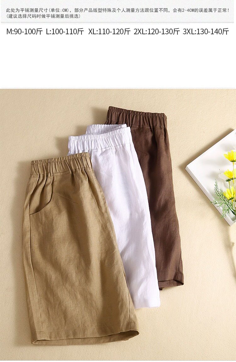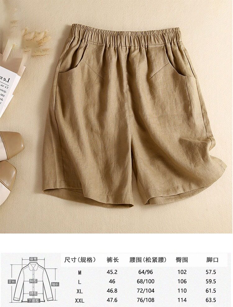 Хаки шорты для отдыха, тонкие штаны, оверсайз, свободный крой, из хлопка и льна