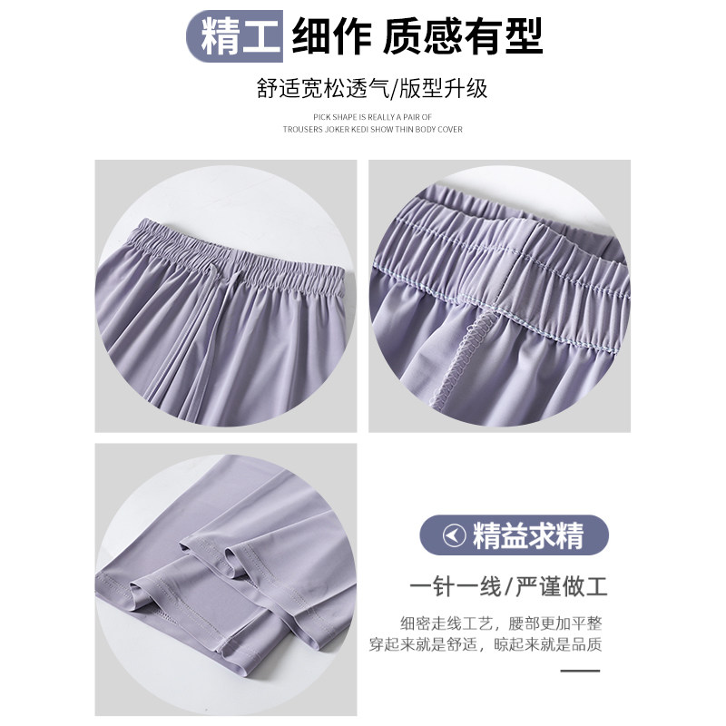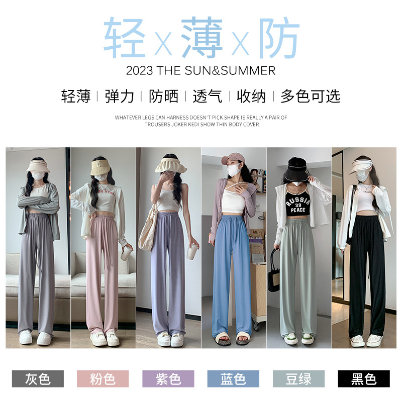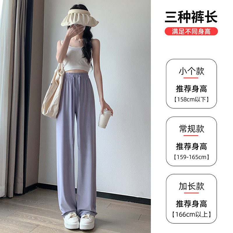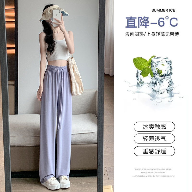 Сиреневые шелковые штаны для отдыха, защита от солнца, высокая талия, свободный прямой крой, подходит для подростков