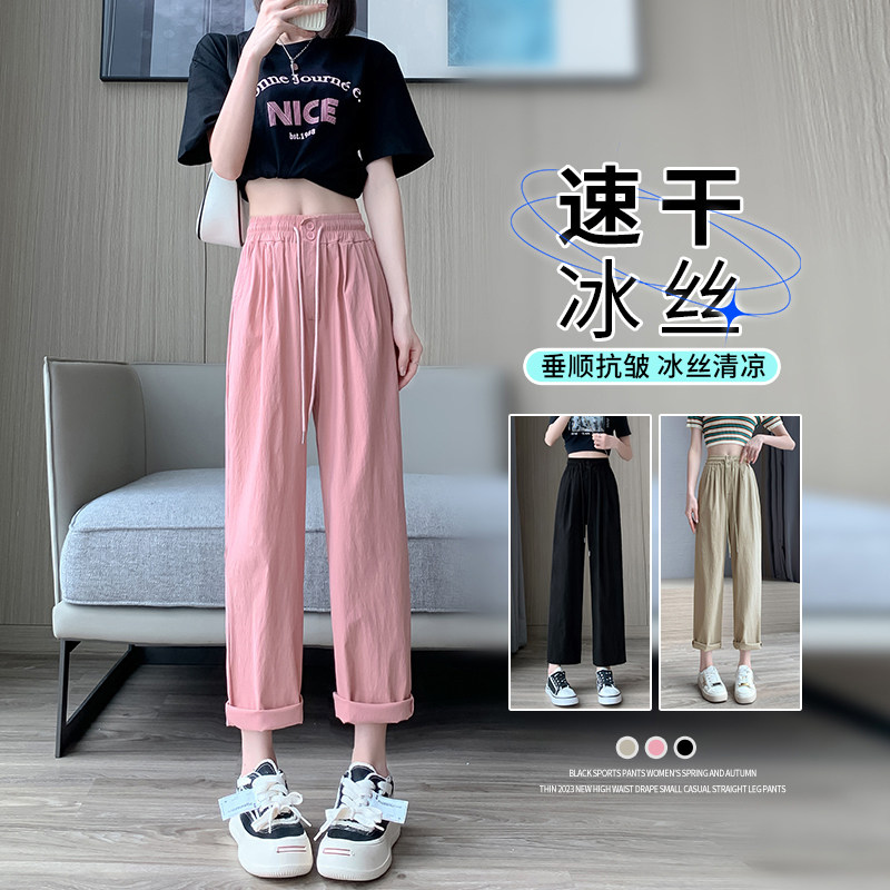 Шелковые тонкие штаны, быстросохнущие повседневные брюки, подходят для подростков, свободный прямой крой