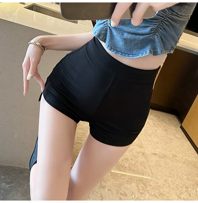 Черные цветные шорты, летние сексуальные эластичные штаны, леггинсы, высокая талия, в обтяжку, с акцентом на бедрах, ассиметричный крой