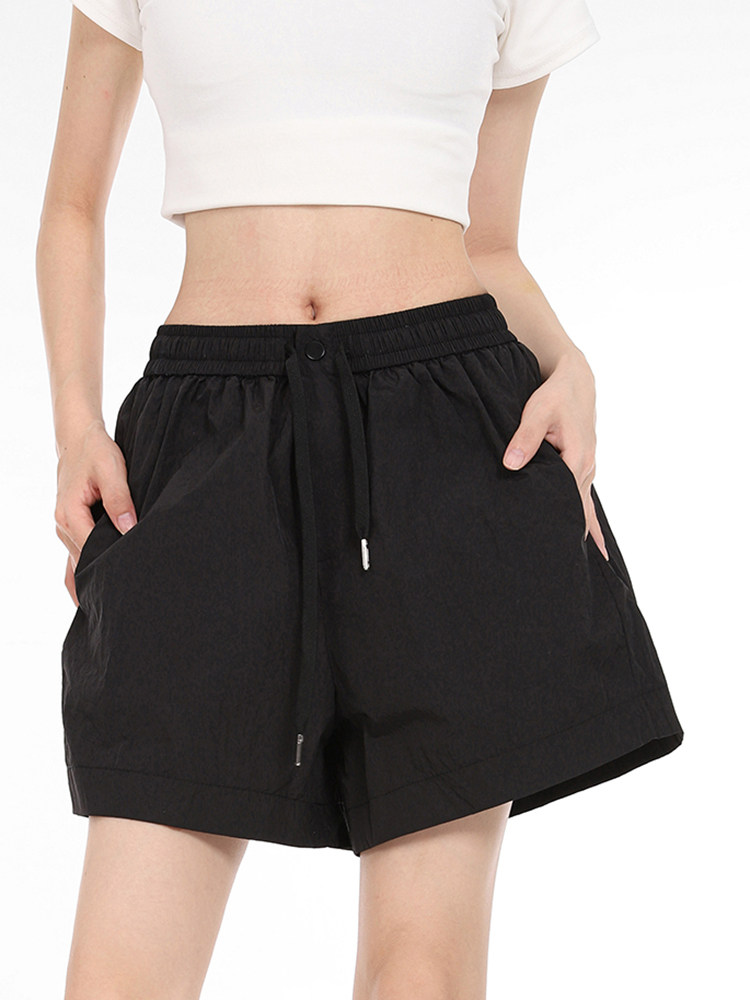 Шорты, штаны, высокая талия, А-силуэт, подходят для подростков, свободный прямой крой
