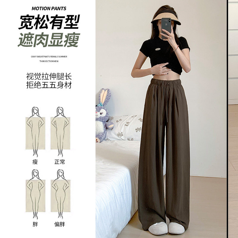 Коричневые тонкие штаны для отдыха, высокая талия, свободный прямой крой, подходит для подростков, из хлопка и льна