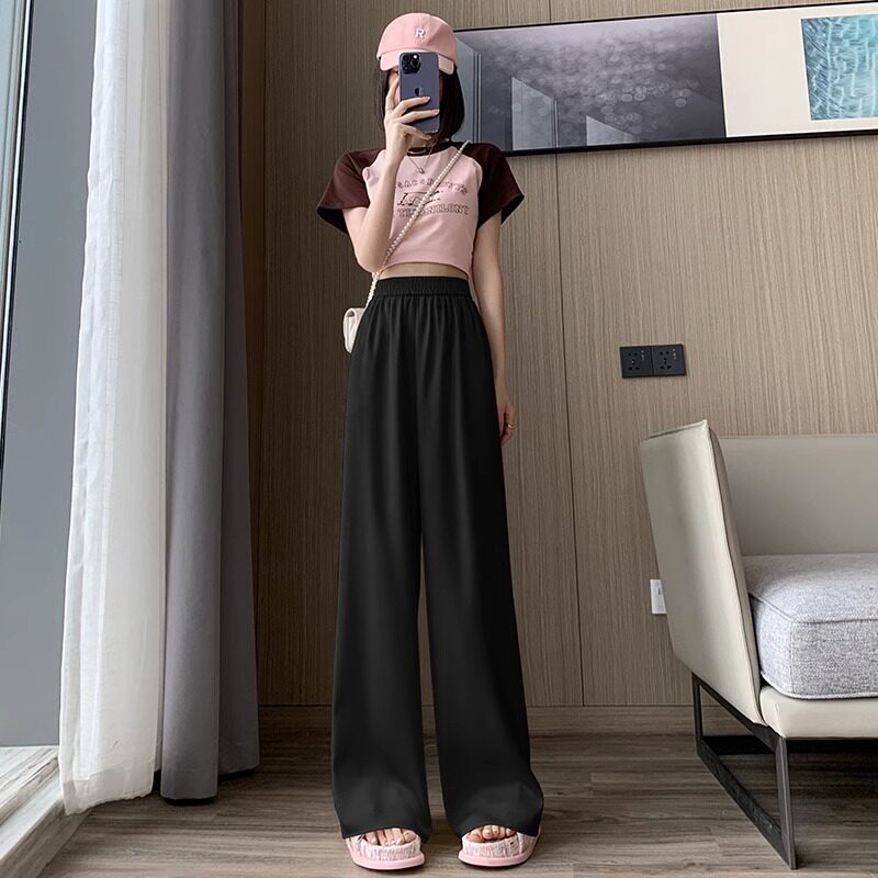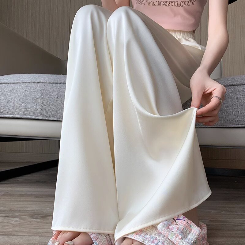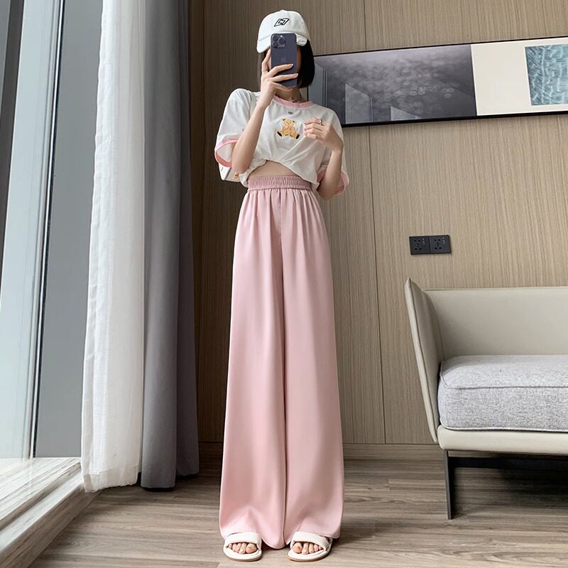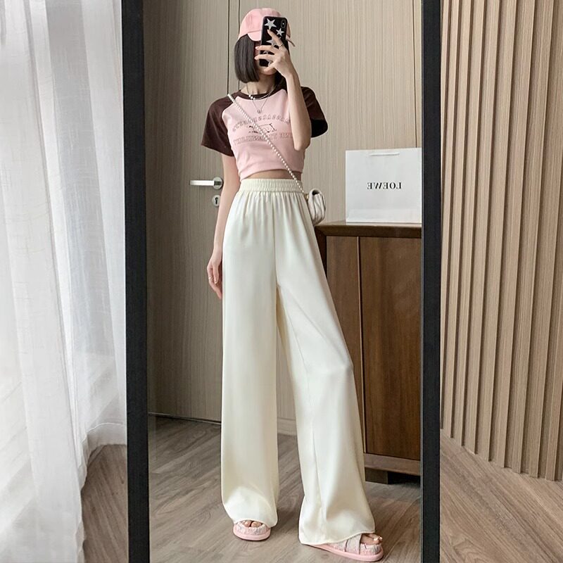 Шелковые тонкие штаны, высокая талия, подходят для подростков, оверсайз, свободный прямой крой