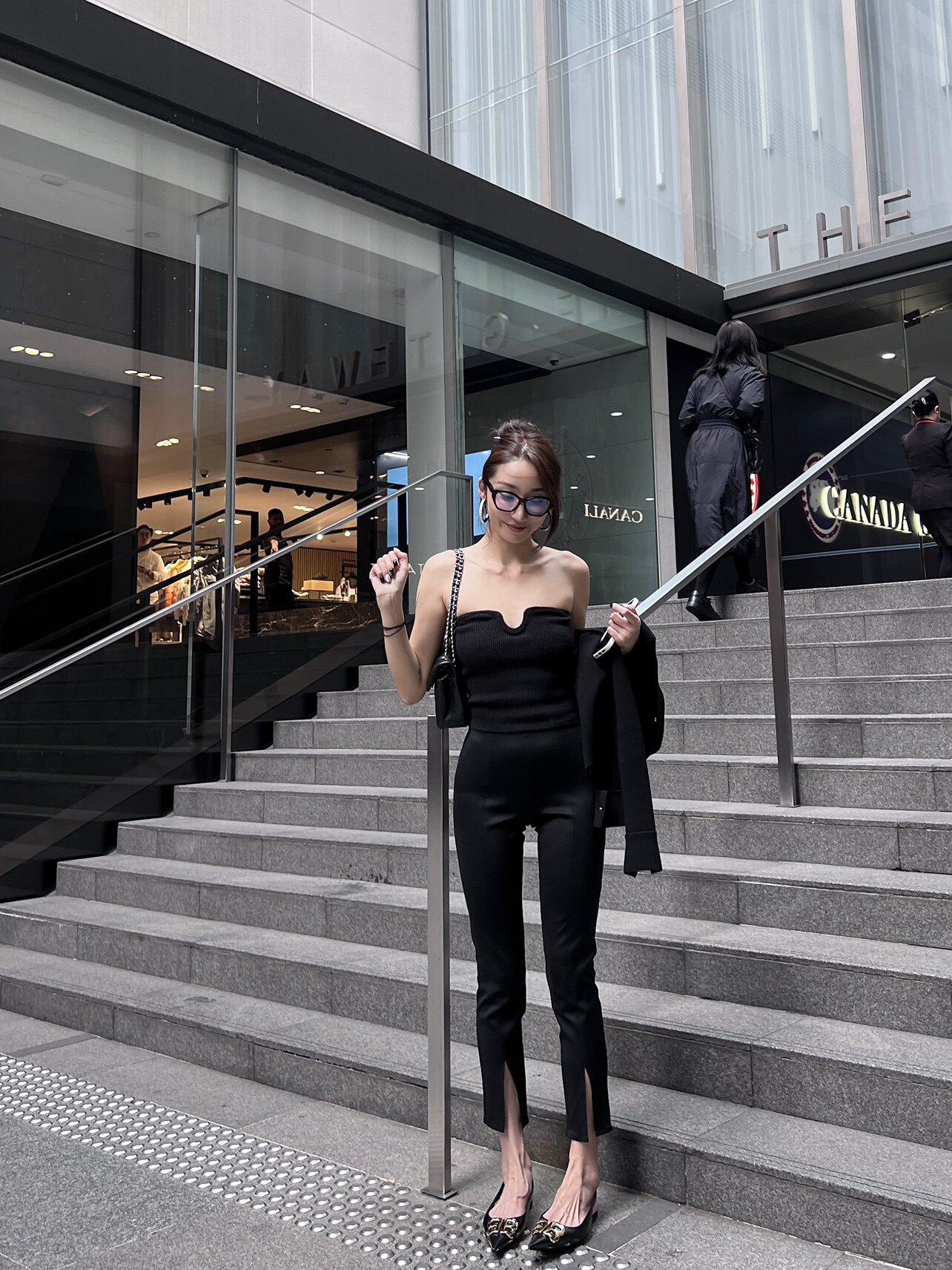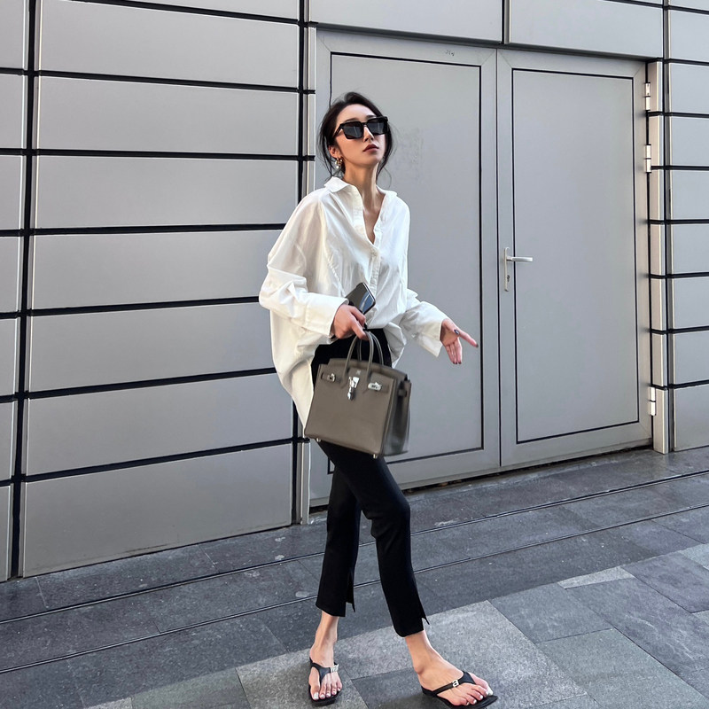 Bacchus Online Black High Bombs Свободная талия и тонкие ноги, ноги, тонкий разделенный костюм, девять -девять -девять -точка -сигаретные брюки