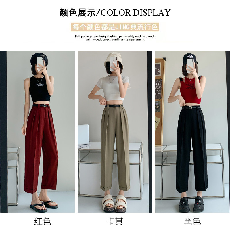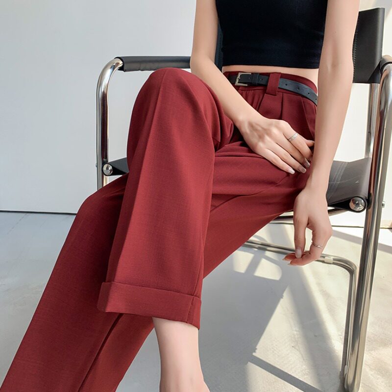 Красные шелковые тонкие штаны, костюм, высокая талия, свободный прямой крой