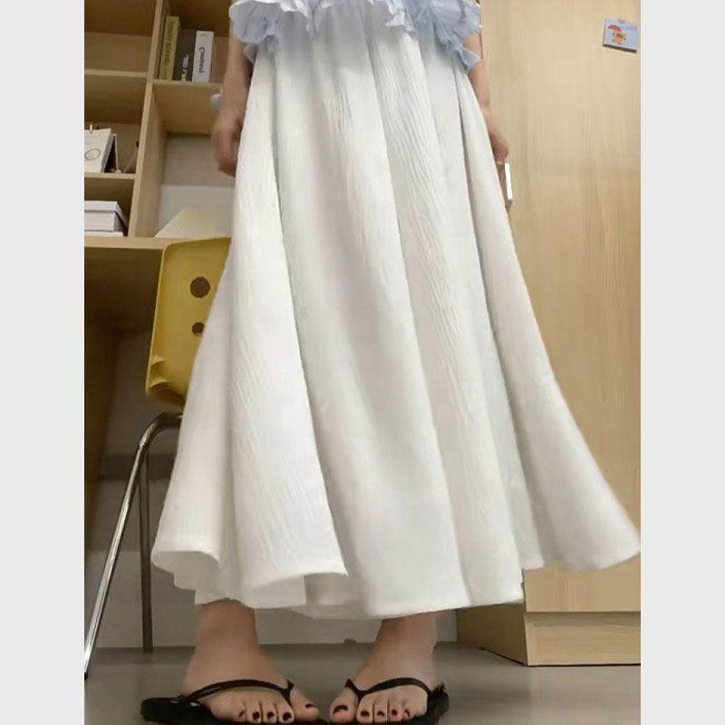 Белая юбка, кожаные штаны, высокая талия, из хлопка и льна