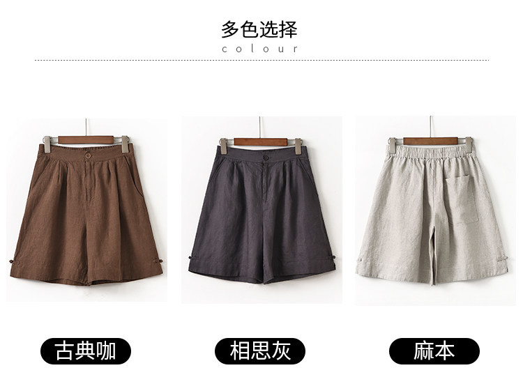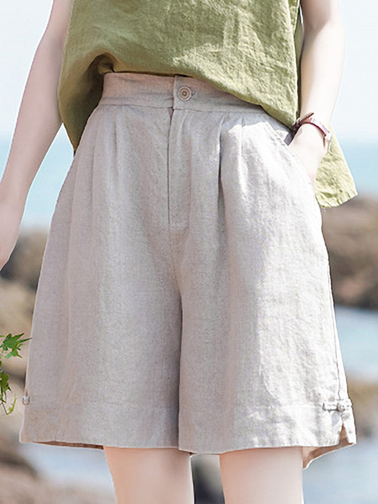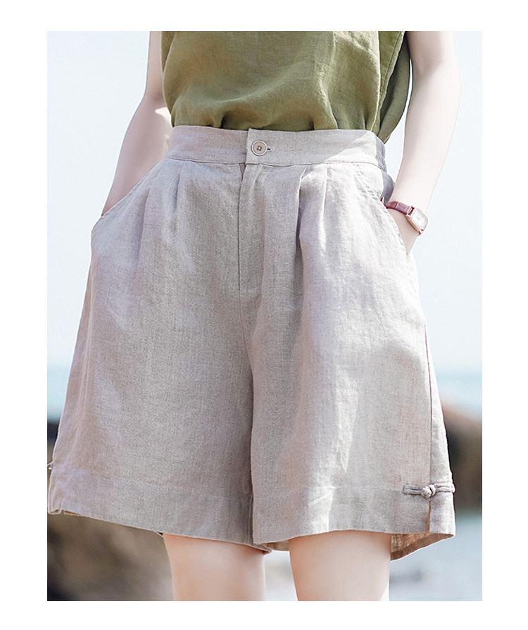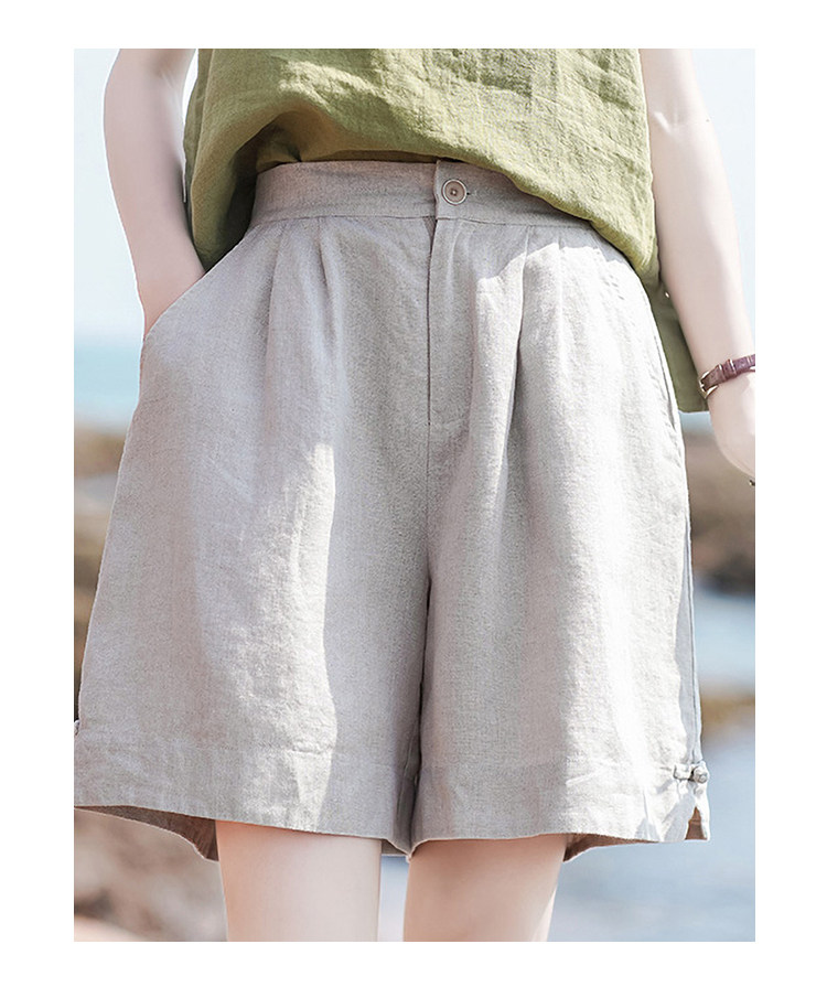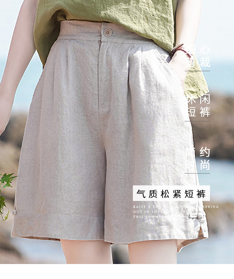Штаны, ретро шорты для отдыха, свободный крой, оверсайз, из хлопка и льна, высокая талия