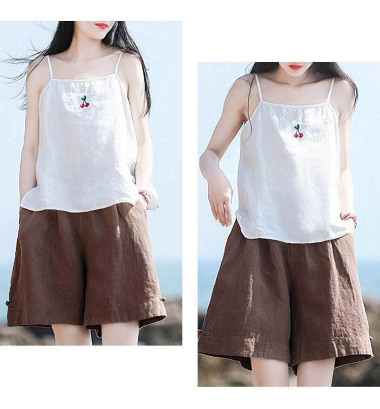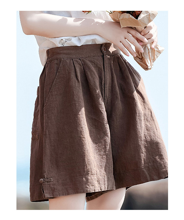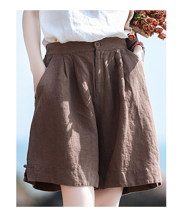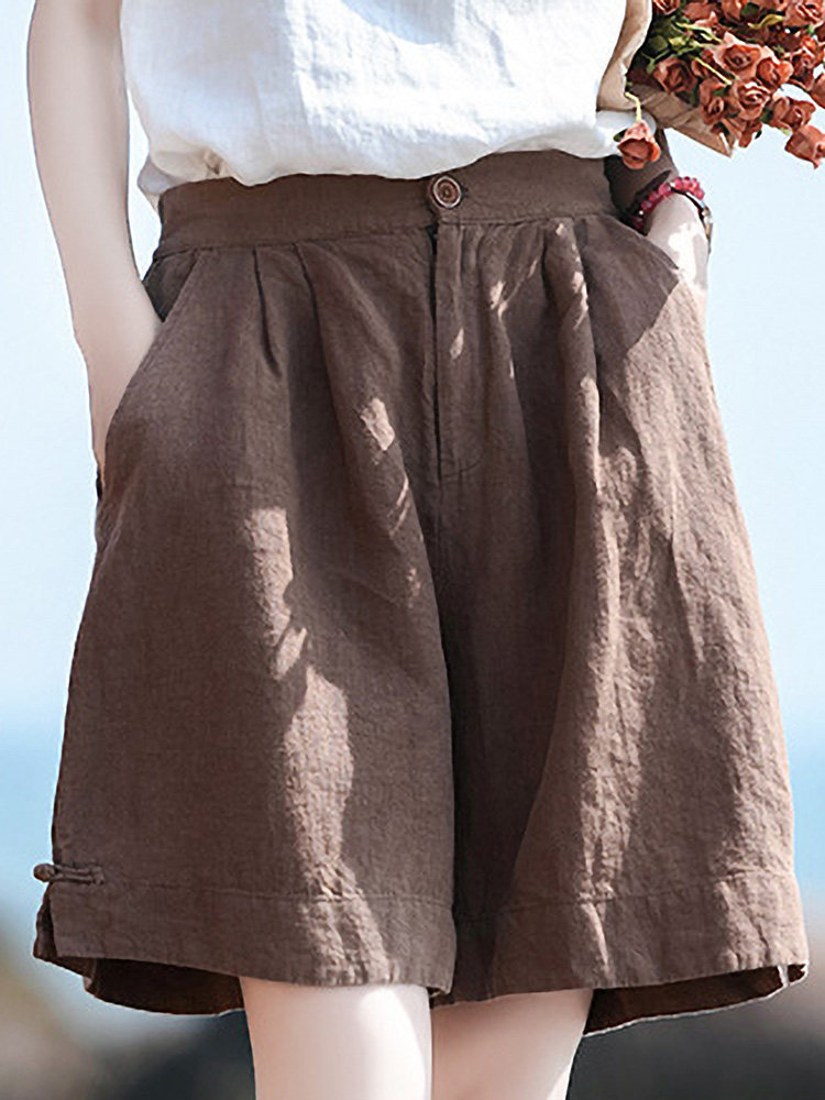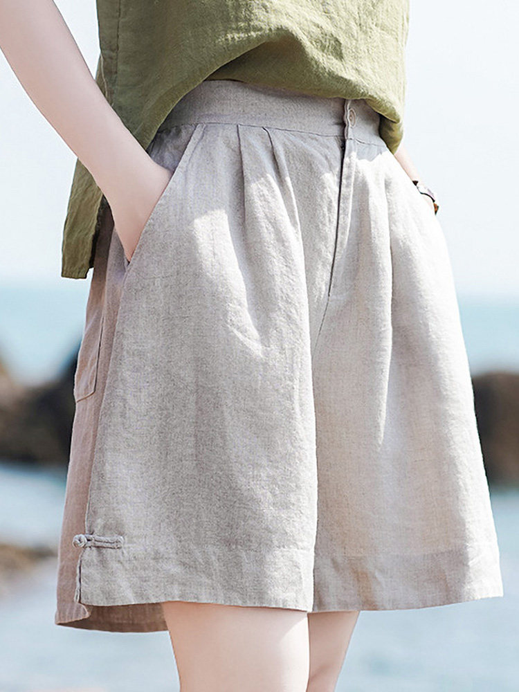 Штаны, ретро шорты для отдыха, свободный крой, оверсайз, из хлопка и льна, высокая талия