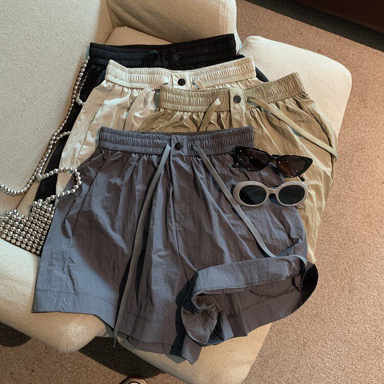 Быстросохнущие шорты, штаны, в американском стиле, оверсайз, А-силуэт, эластичная талия