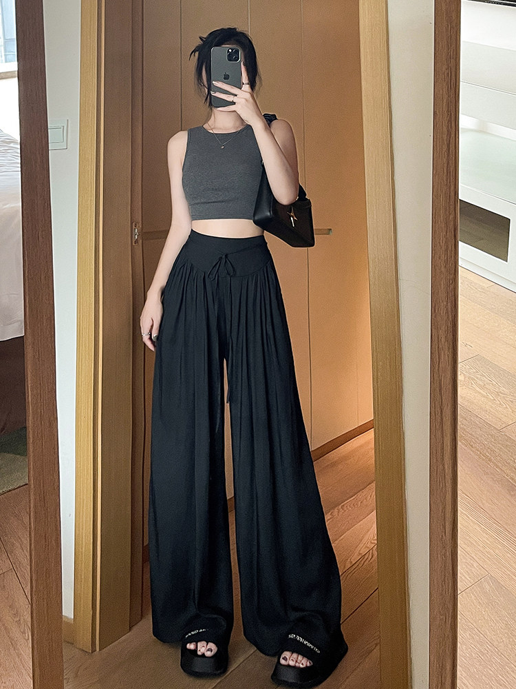 Шелковые штаны, летняя тонкая юбка, из хлопка и льна, высокая талия, китайский стиль