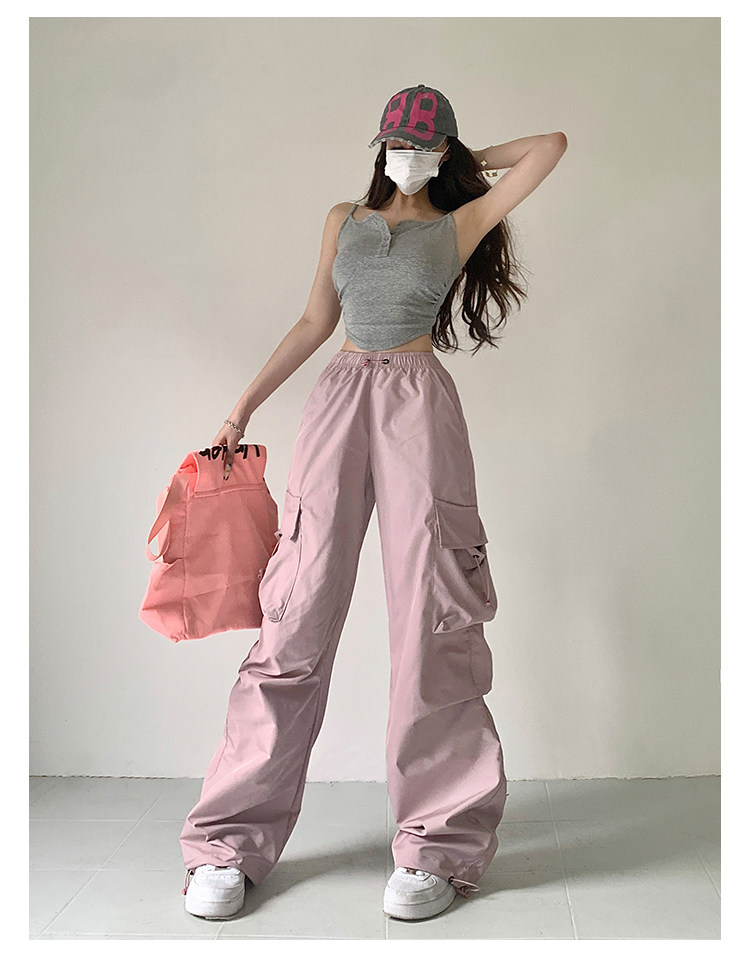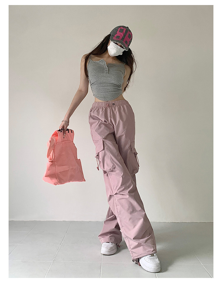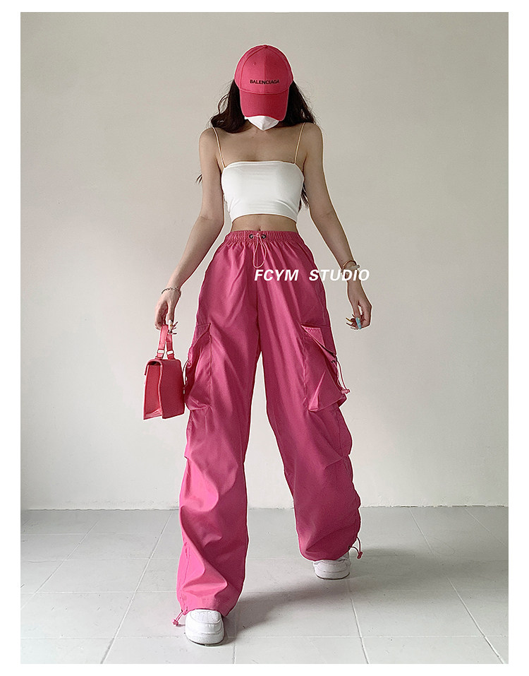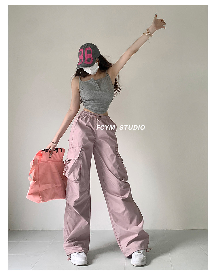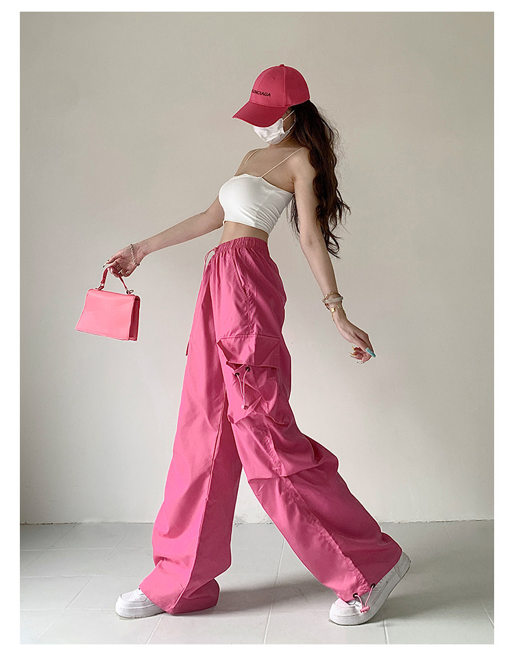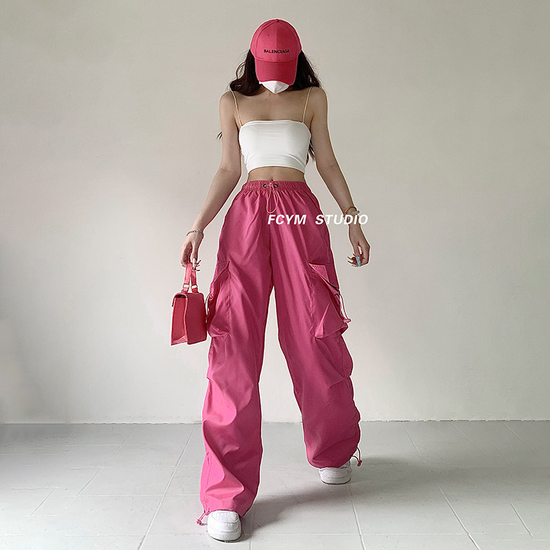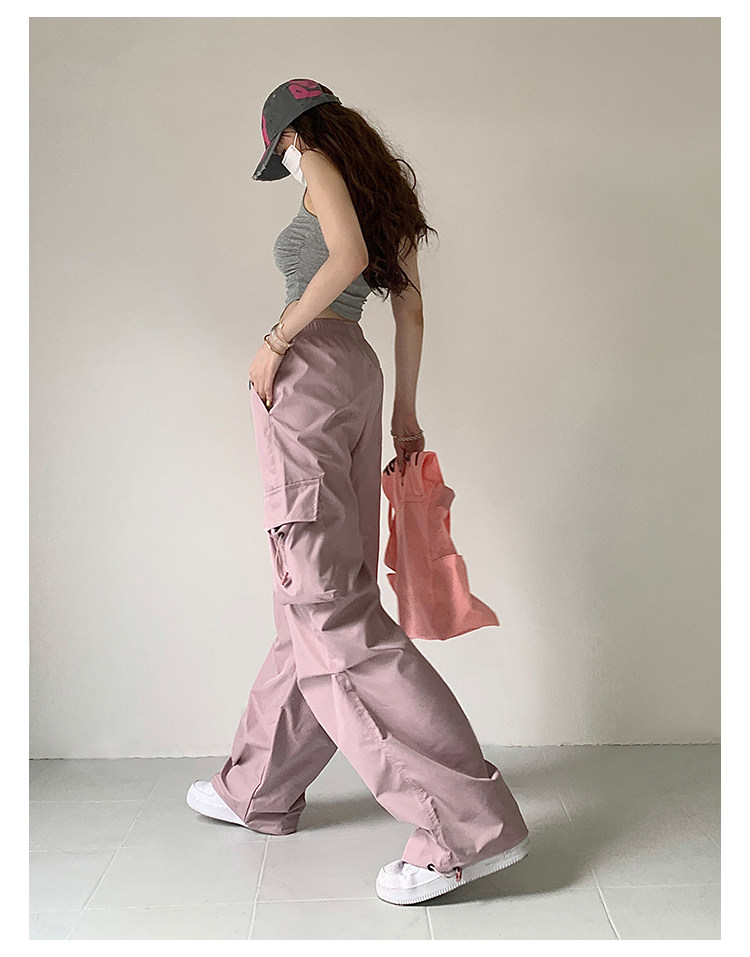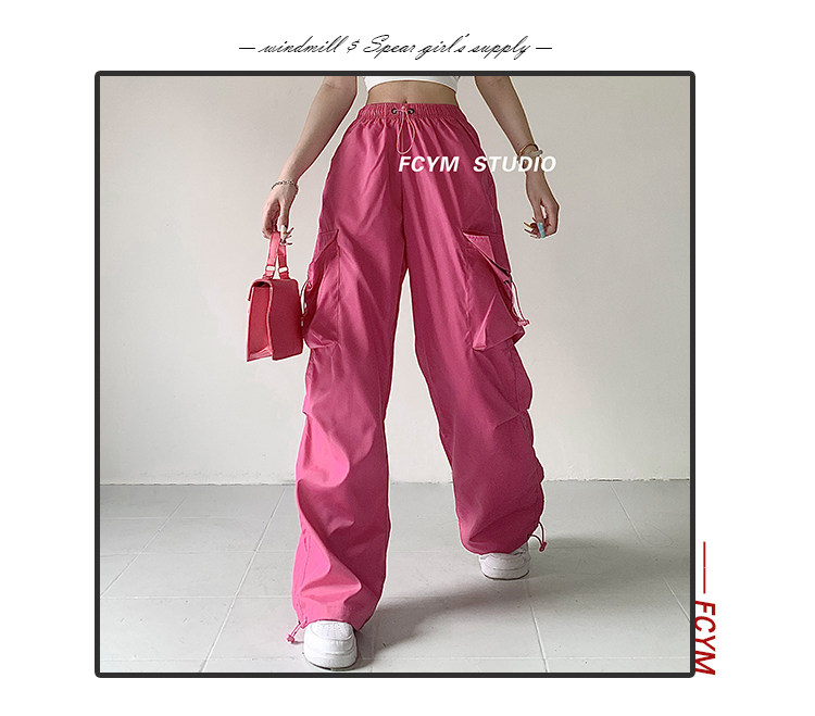 风车与矛 Весенние розовые штаны для отдыха, в американском стиле, свободный прямой крой, на шнурках