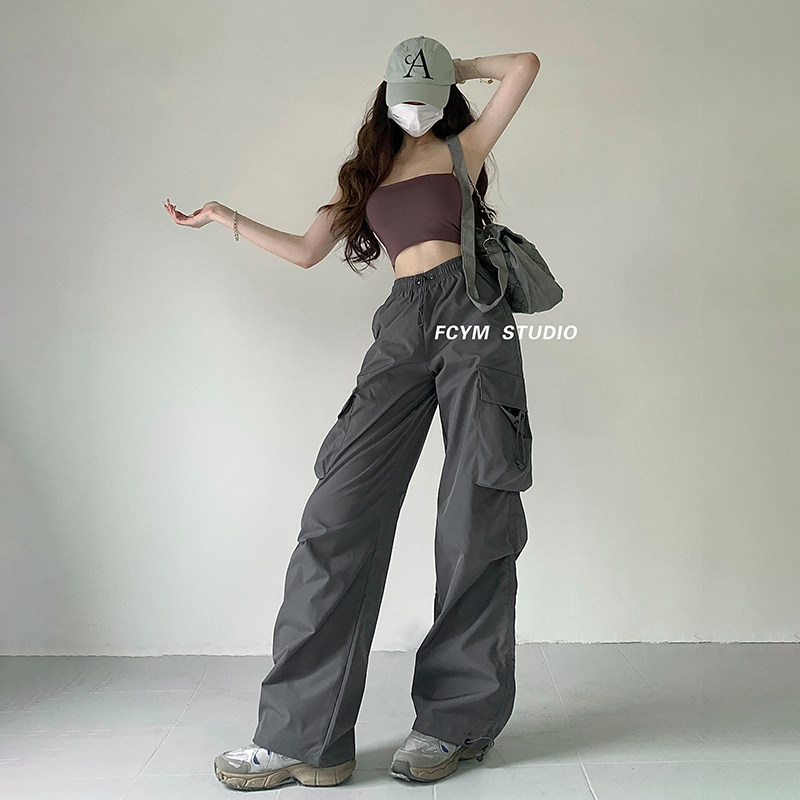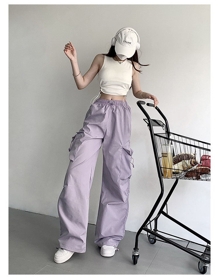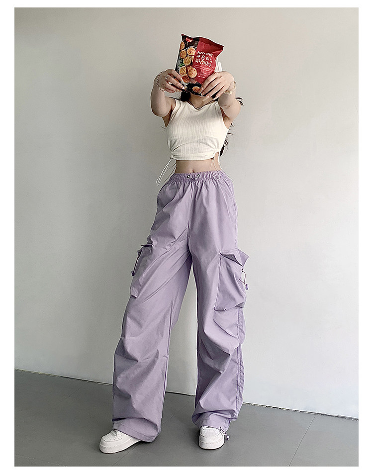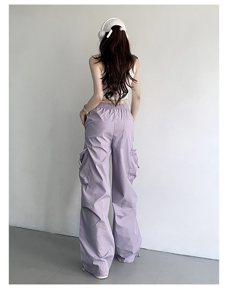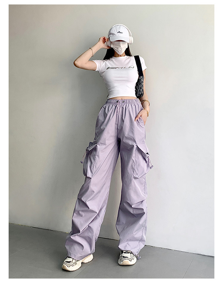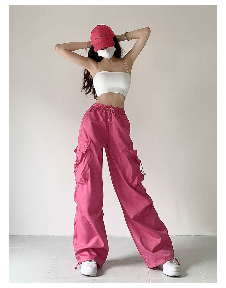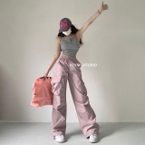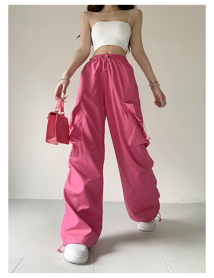 风车与矛 Весенние розовые штаны для отдыха, в американском стиле, свободный прямой крой, на шнурках