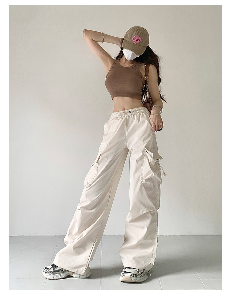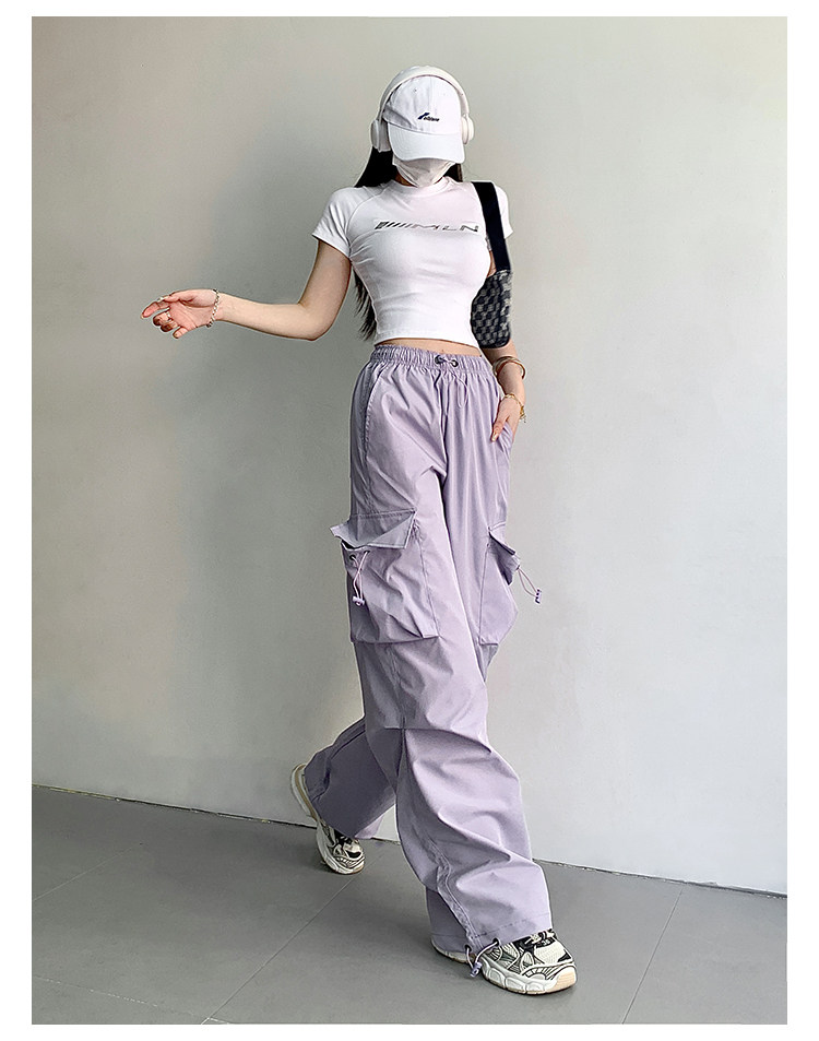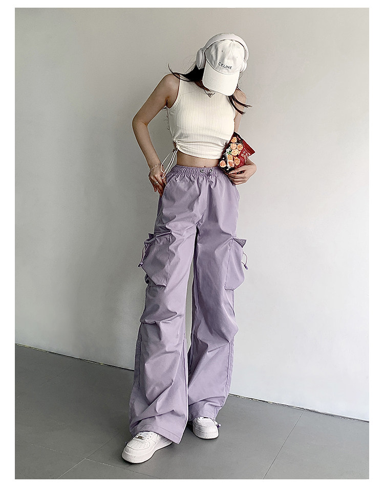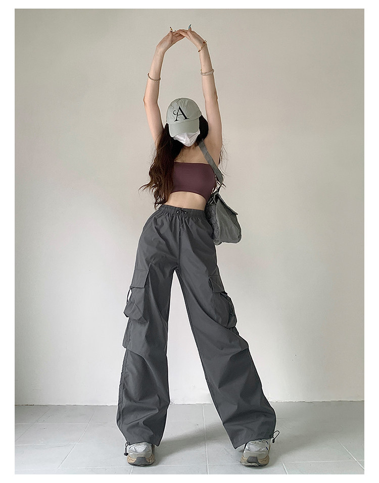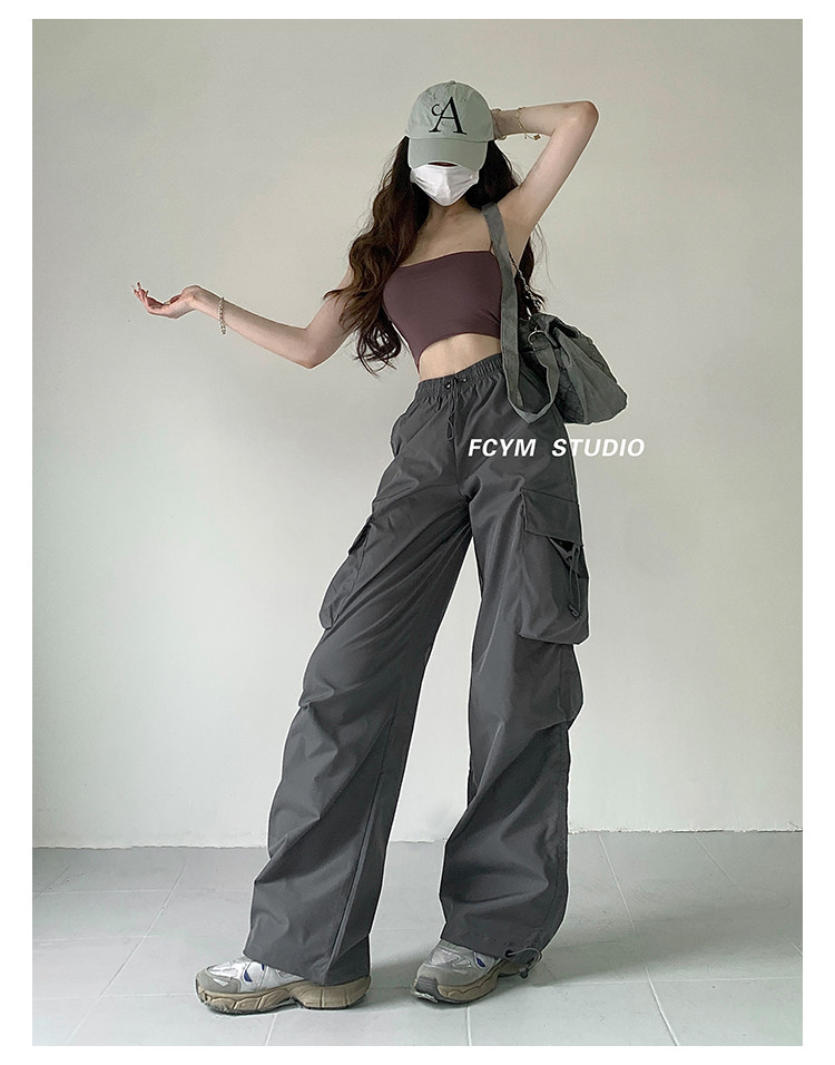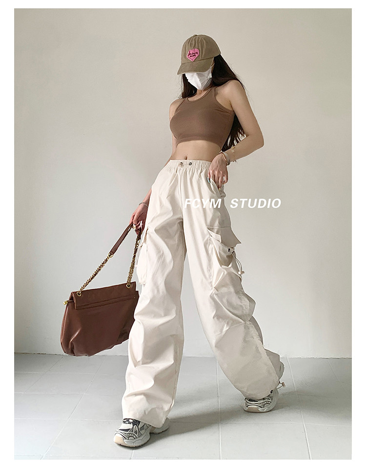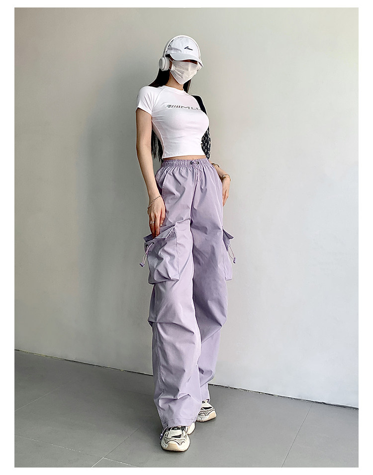 风车与矛 Весенние розовые штаны для отдыха, в американском стиле, свободный прямой крой, на шнурках