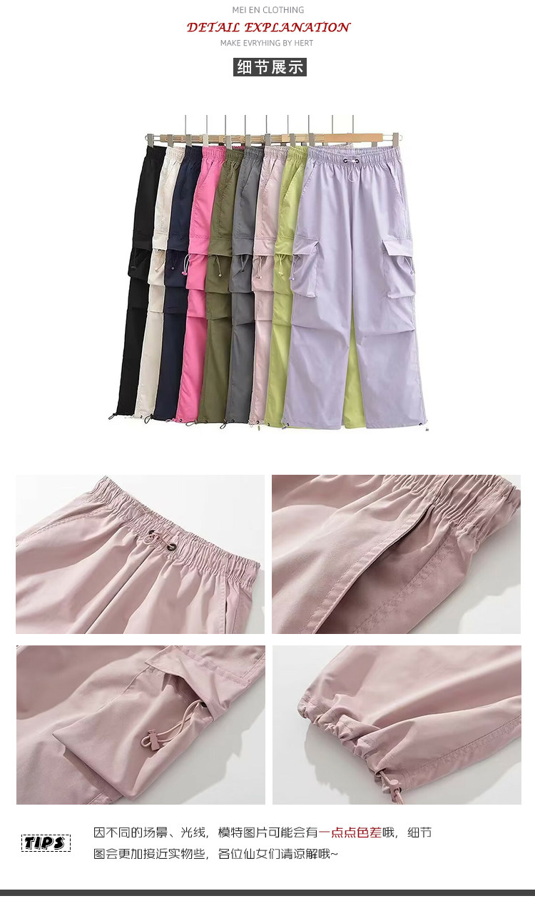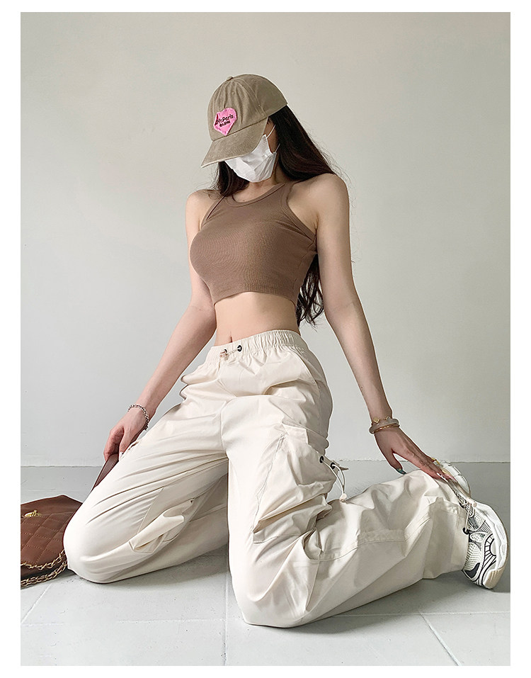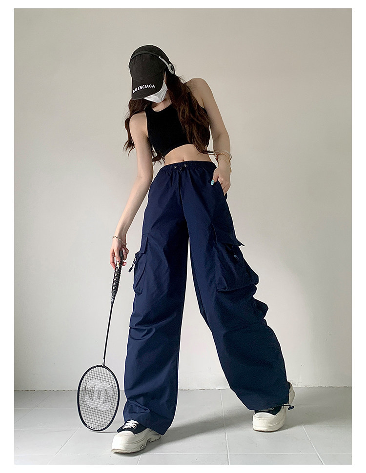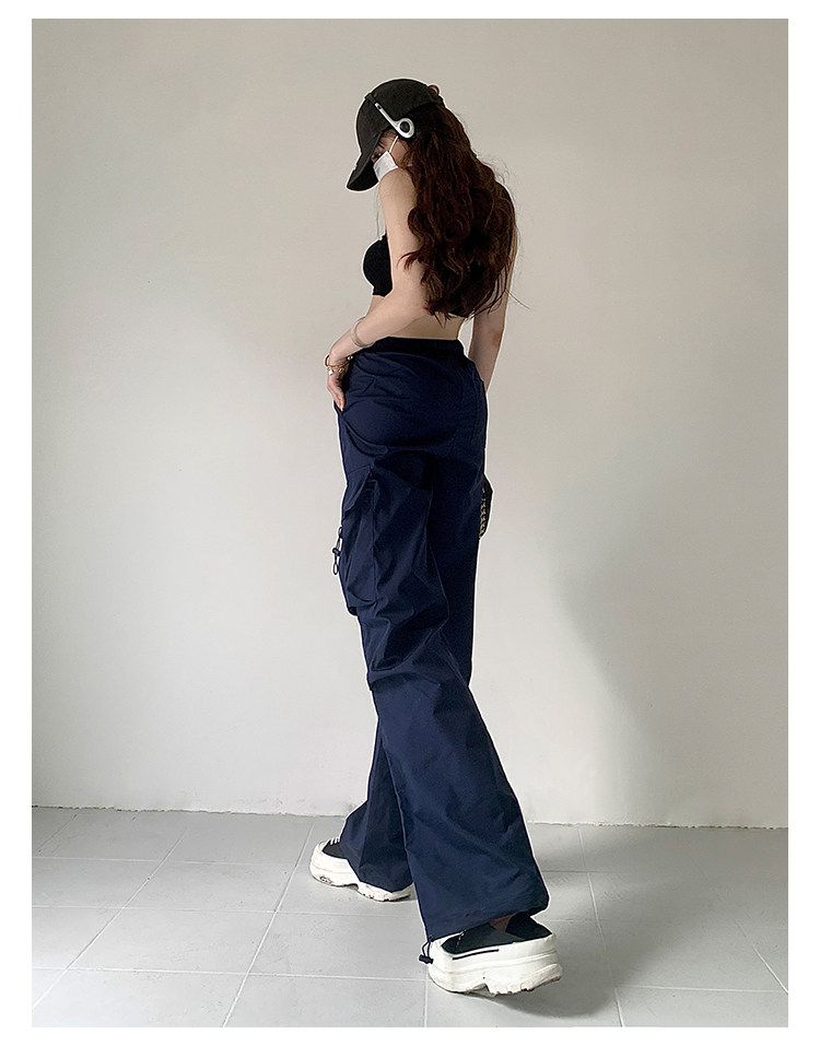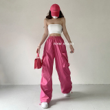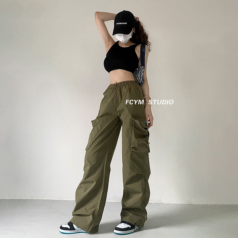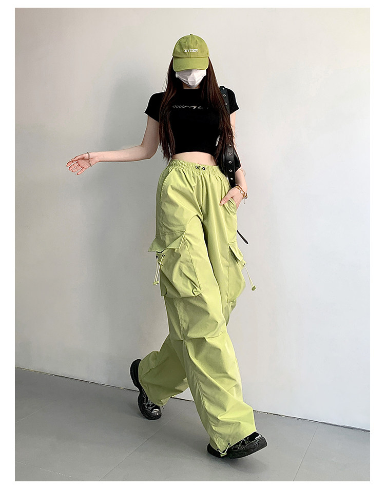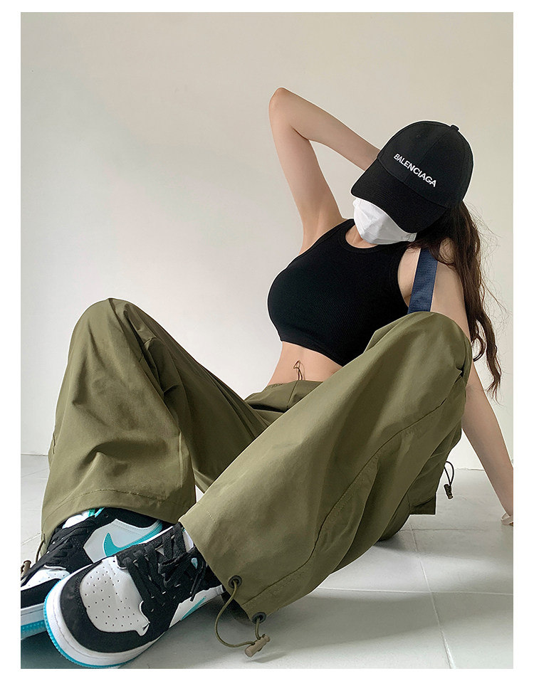 风车与矛 Весенние розовые штаны для отдыха, в американском стиле, свободный прямой крой, на шнурках