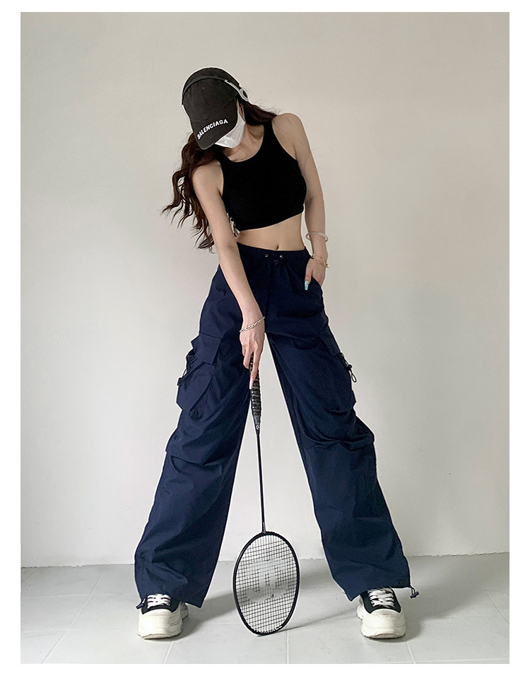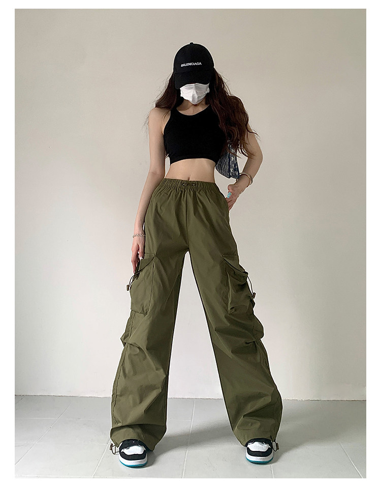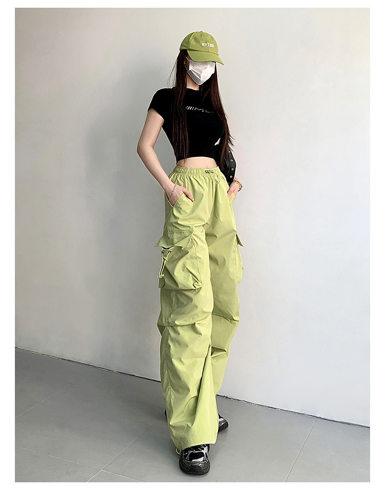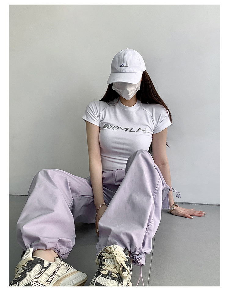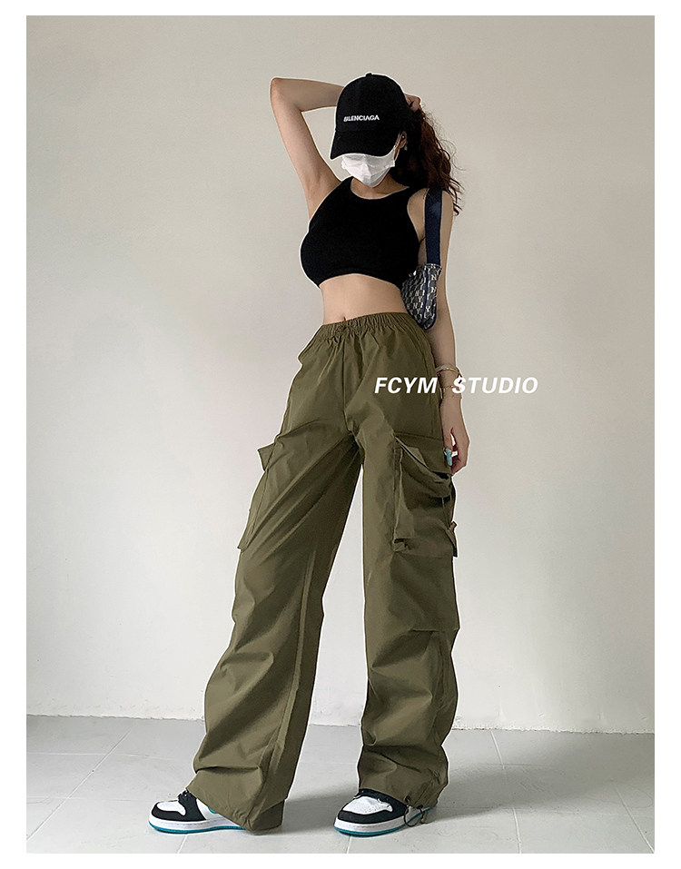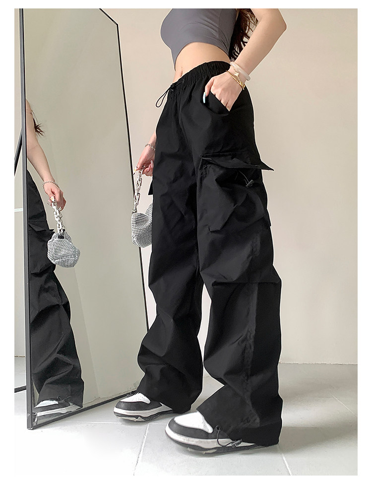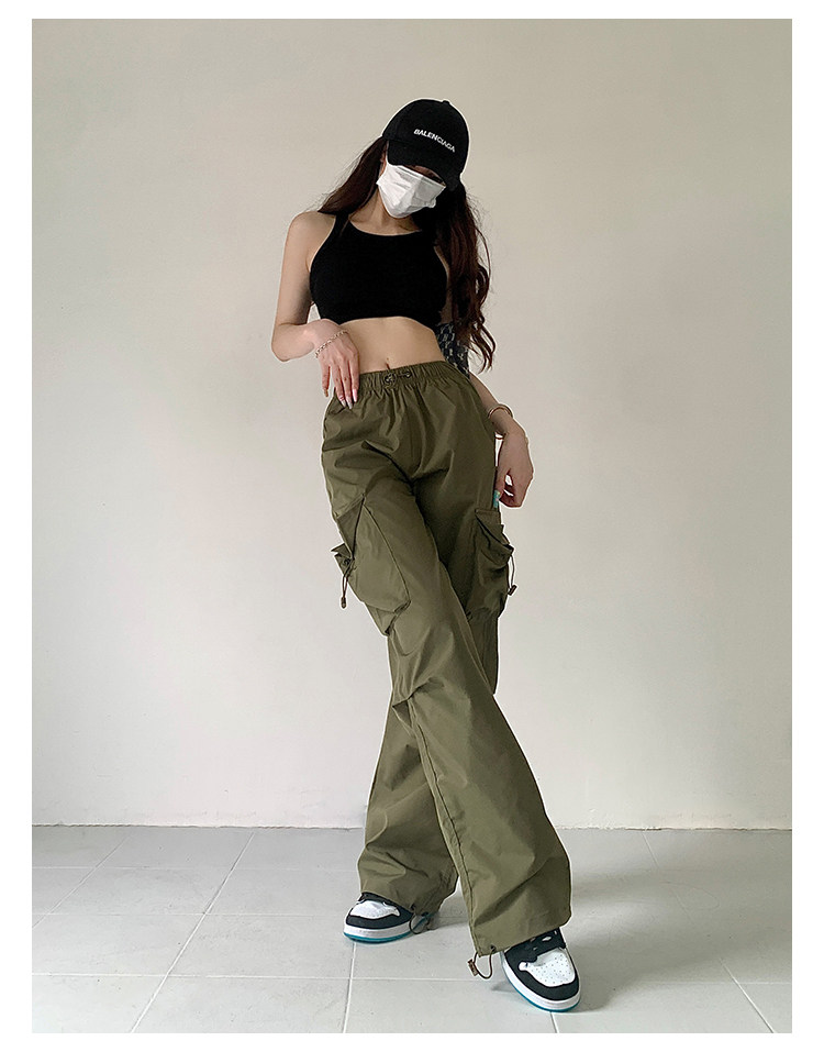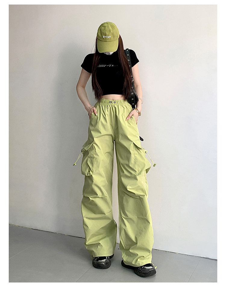 风车与矛 Весенние розовые штаны для отдыха, в американском стиле, свободный прямой крой, на шнурках