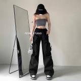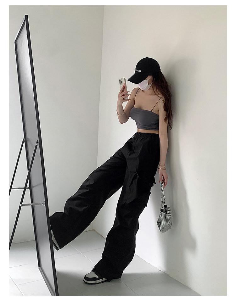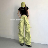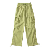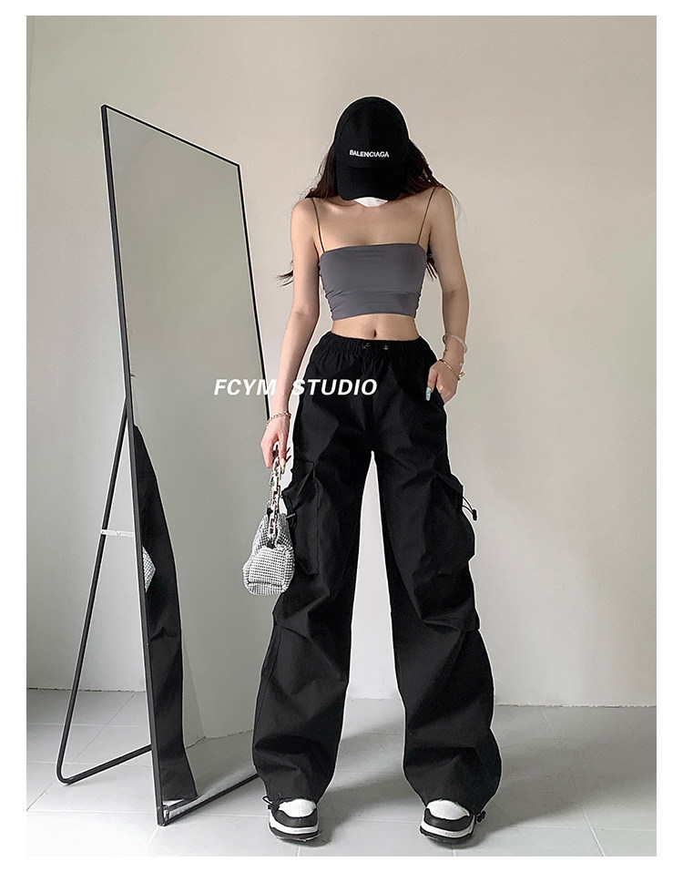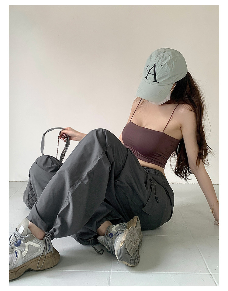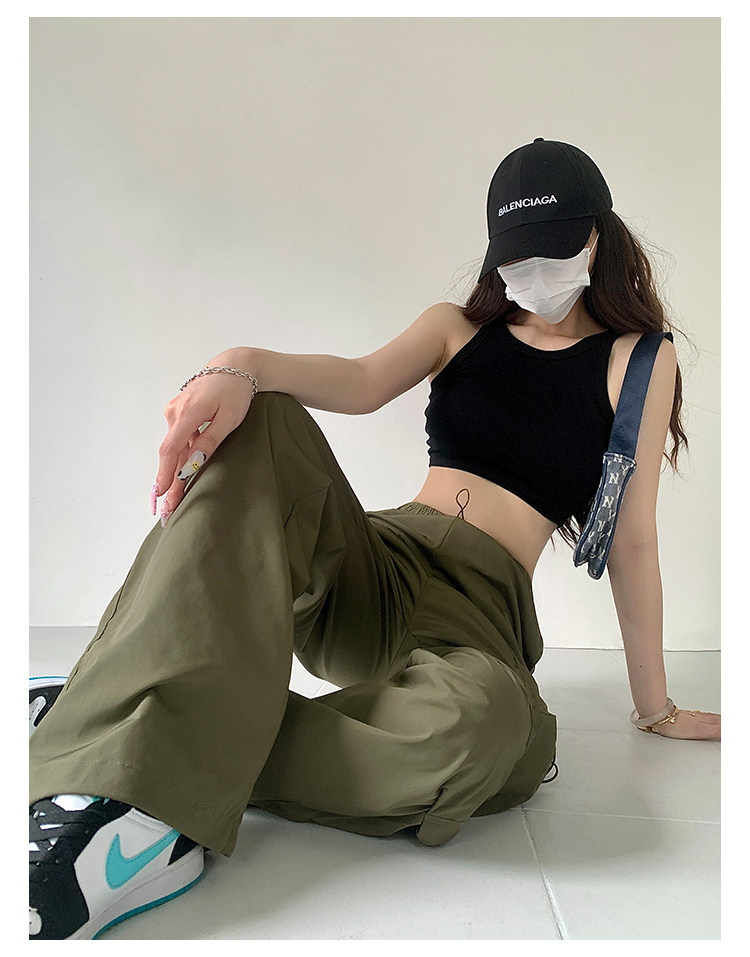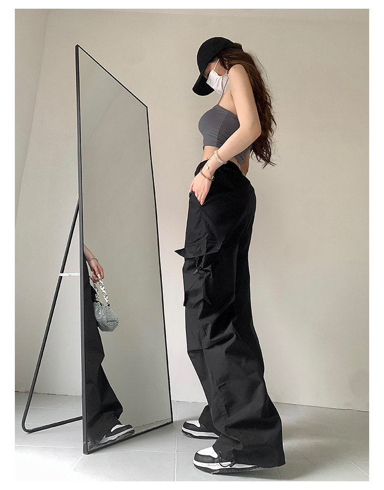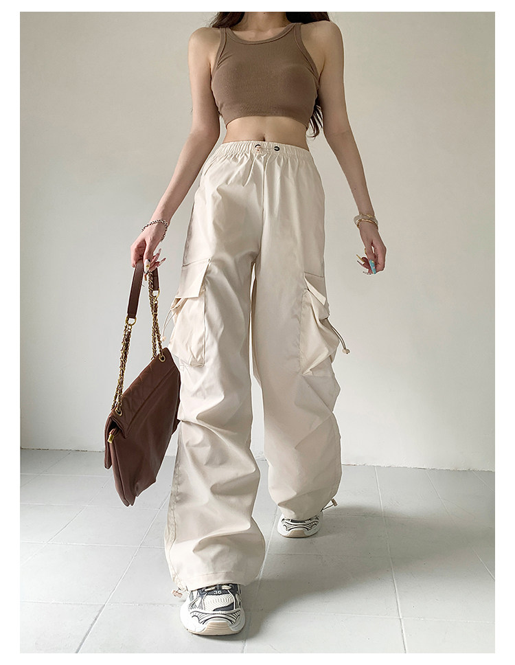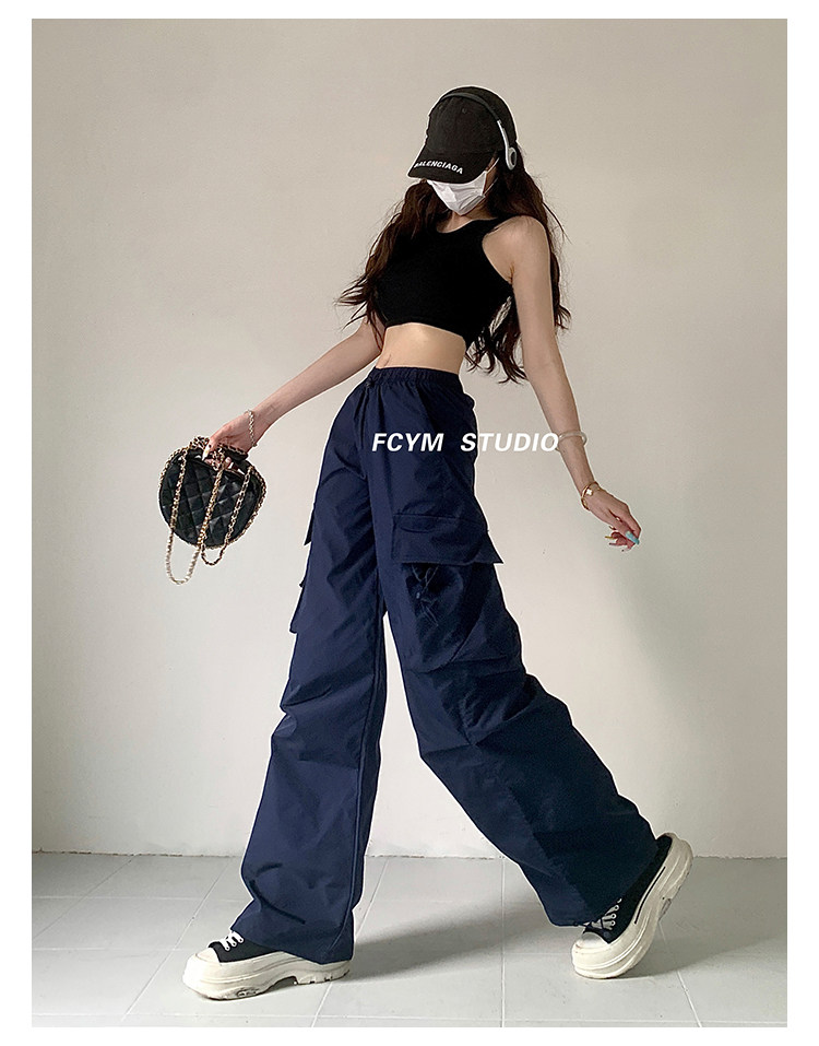 风车与矛 Весенние розовые штаны для отдыха, в американском стиле, свободный прямой крой, на шнурках