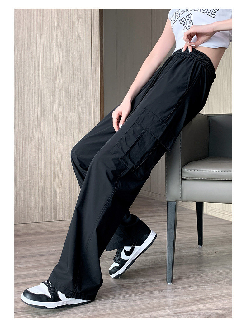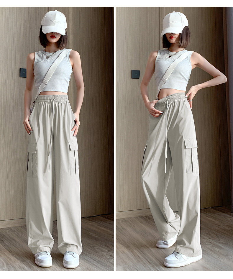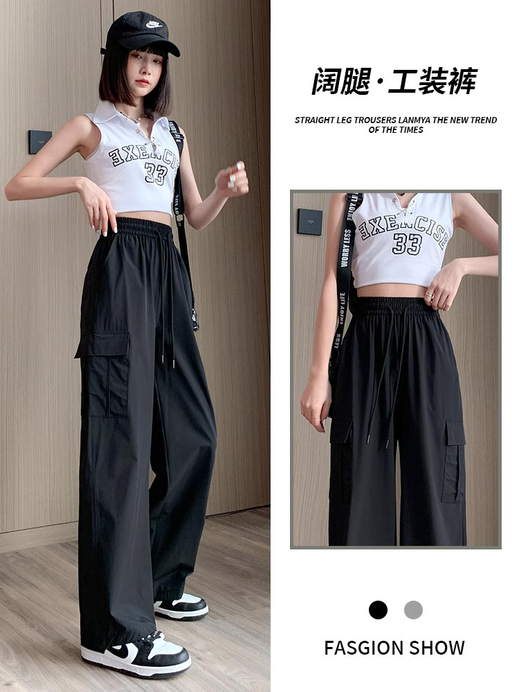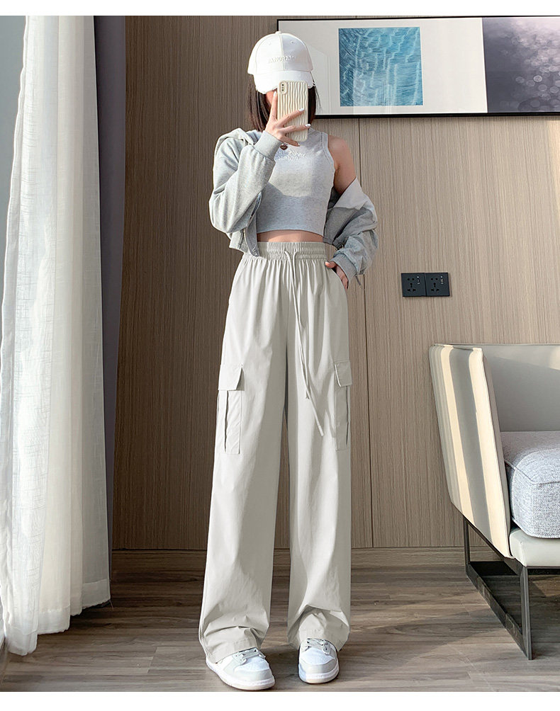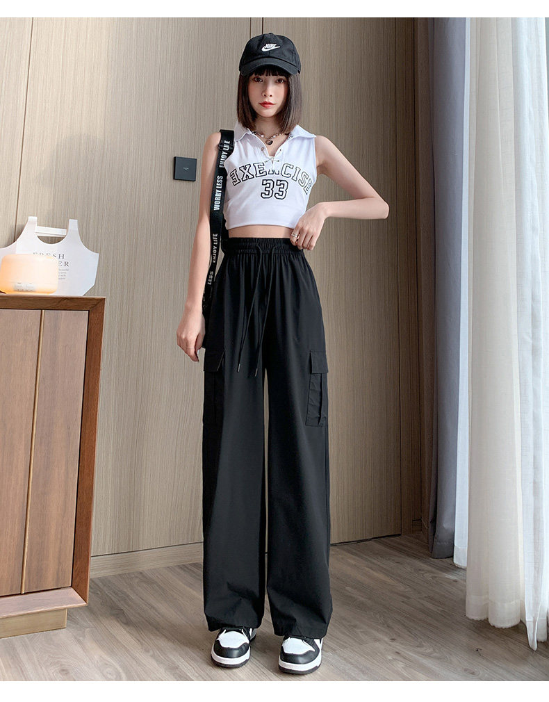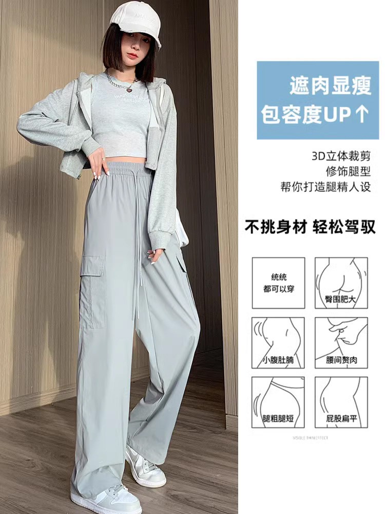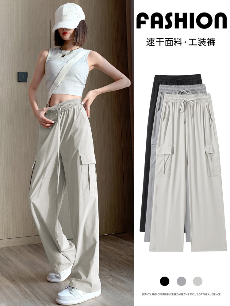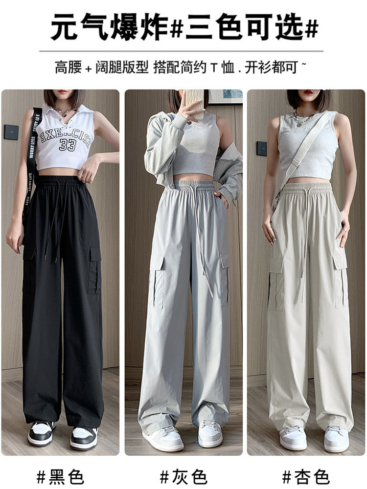 Тонкие шелковые быстросохнущие спортивные штаны для отдыха, в американском стиле, высокая талия, свободный крой