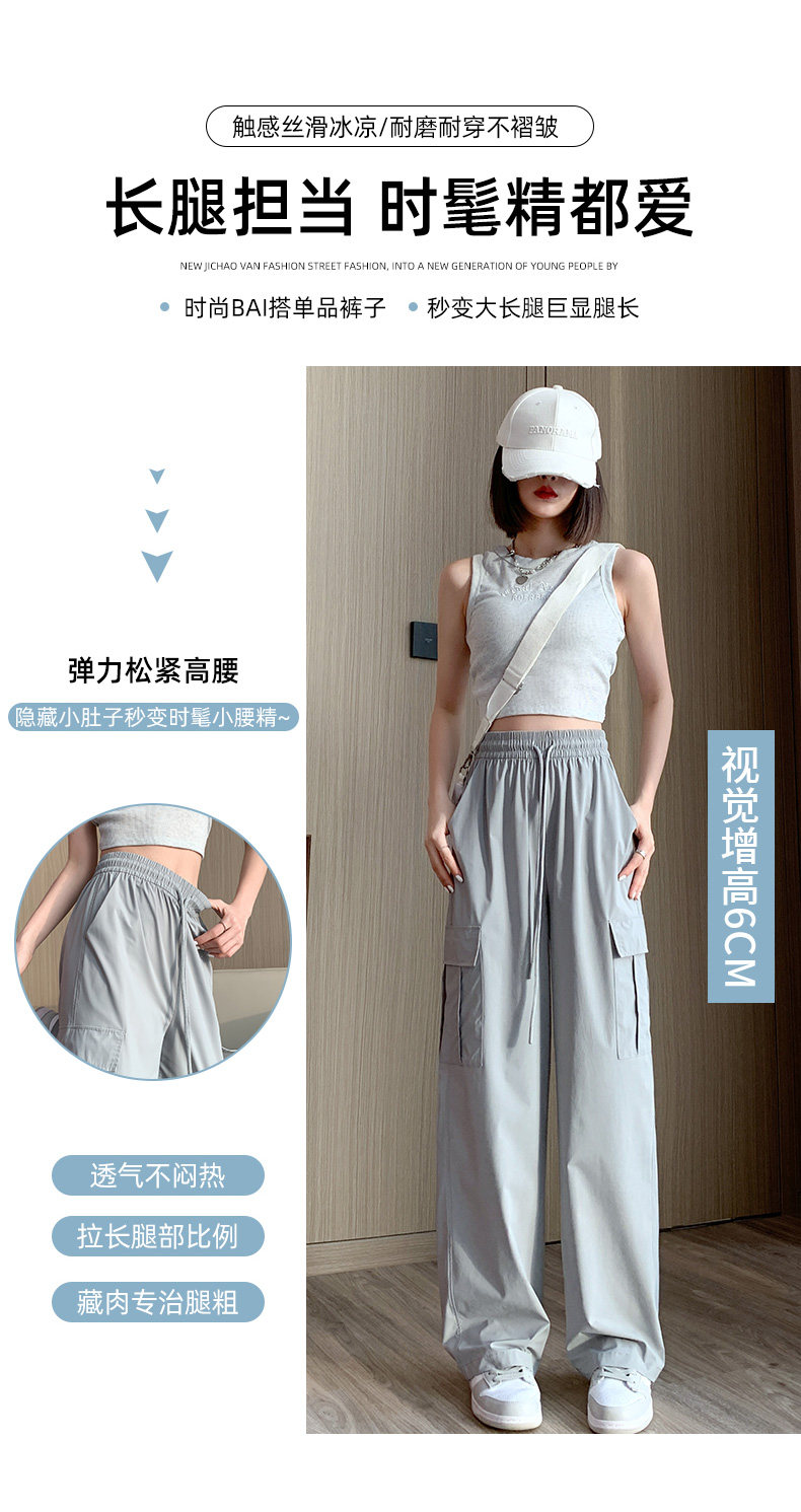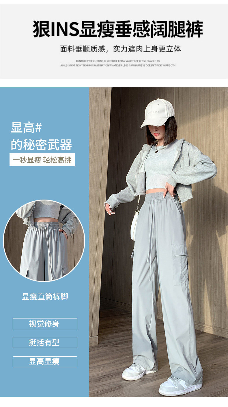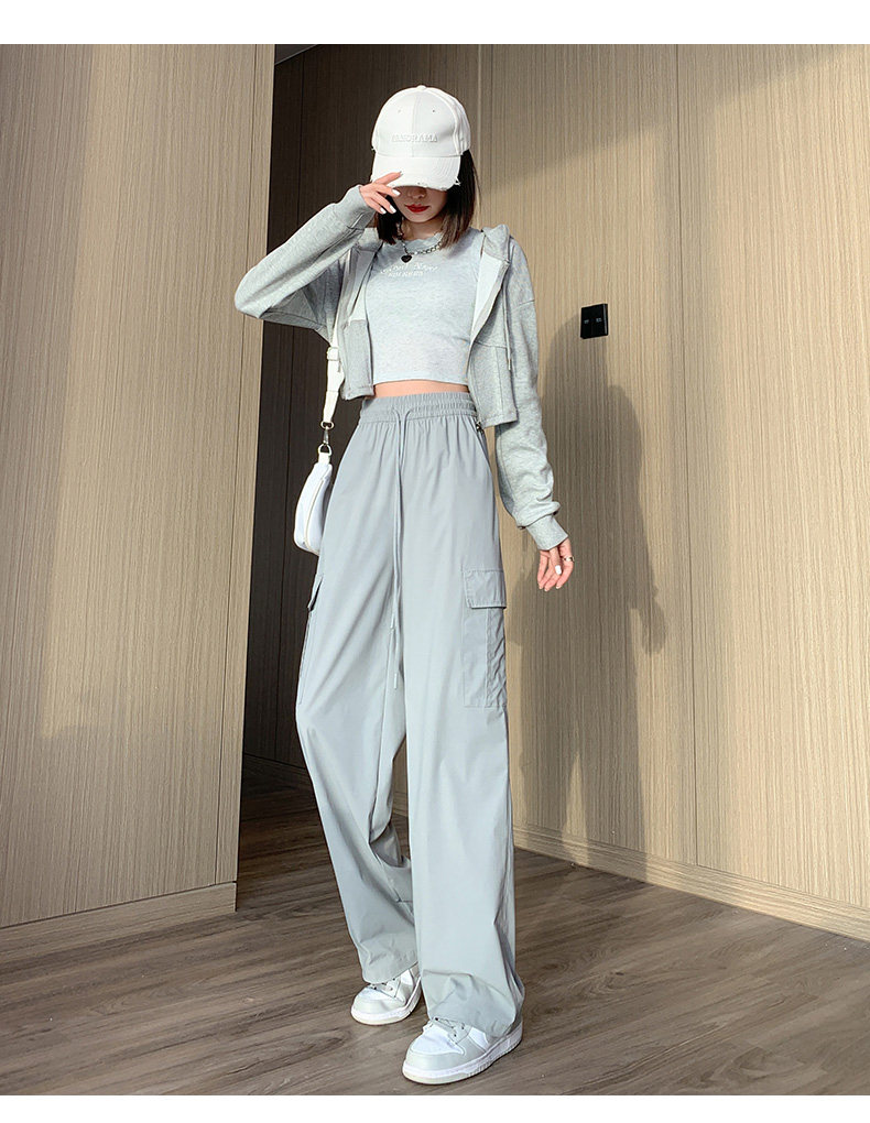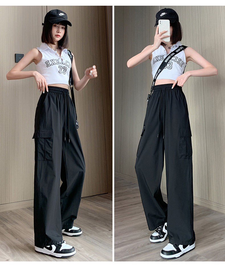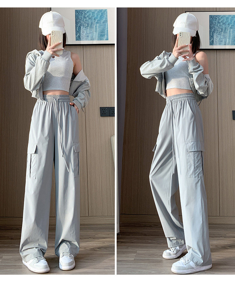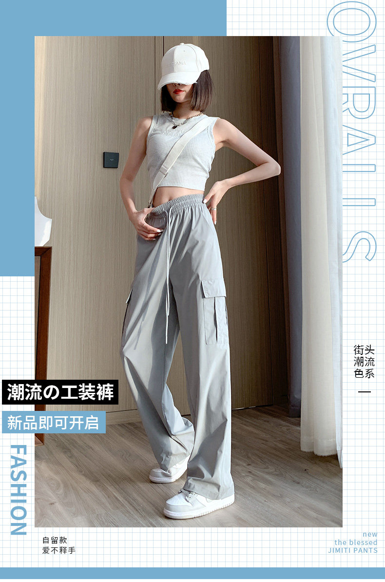Тонкие шелковые быстросохнущие спортивные штаны для отдыха, в американском стиле, высокая талия, свободный крой