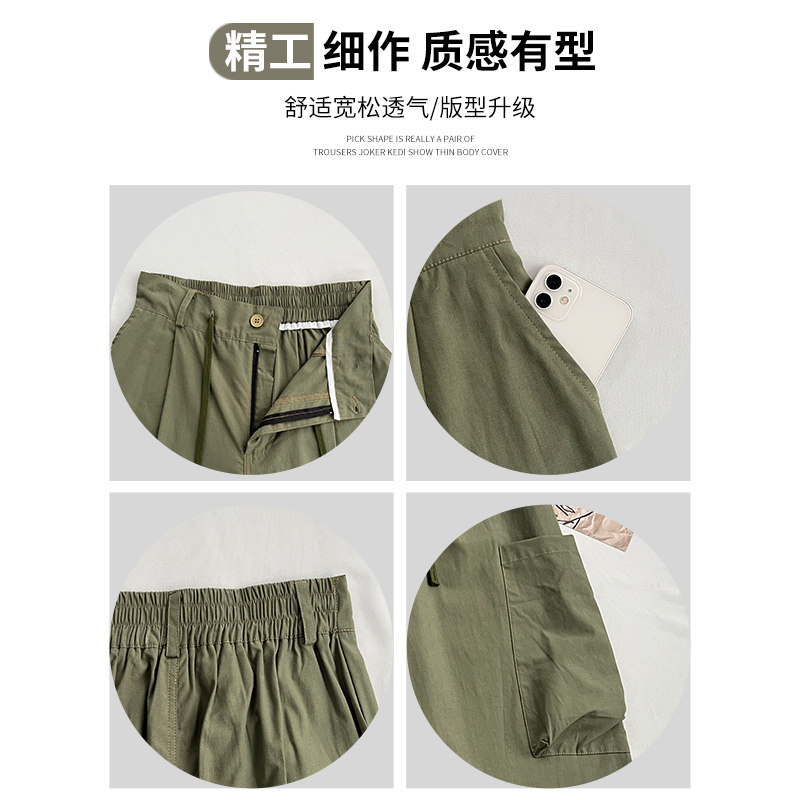 Зеленая униформа медсестры, тонкие ретро штаны для отдыха, коллекция 2023, высокая талия, свободный прямой крой, в американском стиле