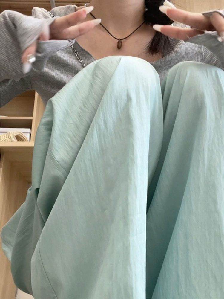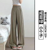 Летние штаны, высокая талия, подходит для подростков, свободный прямой крой, из хлопка и льна