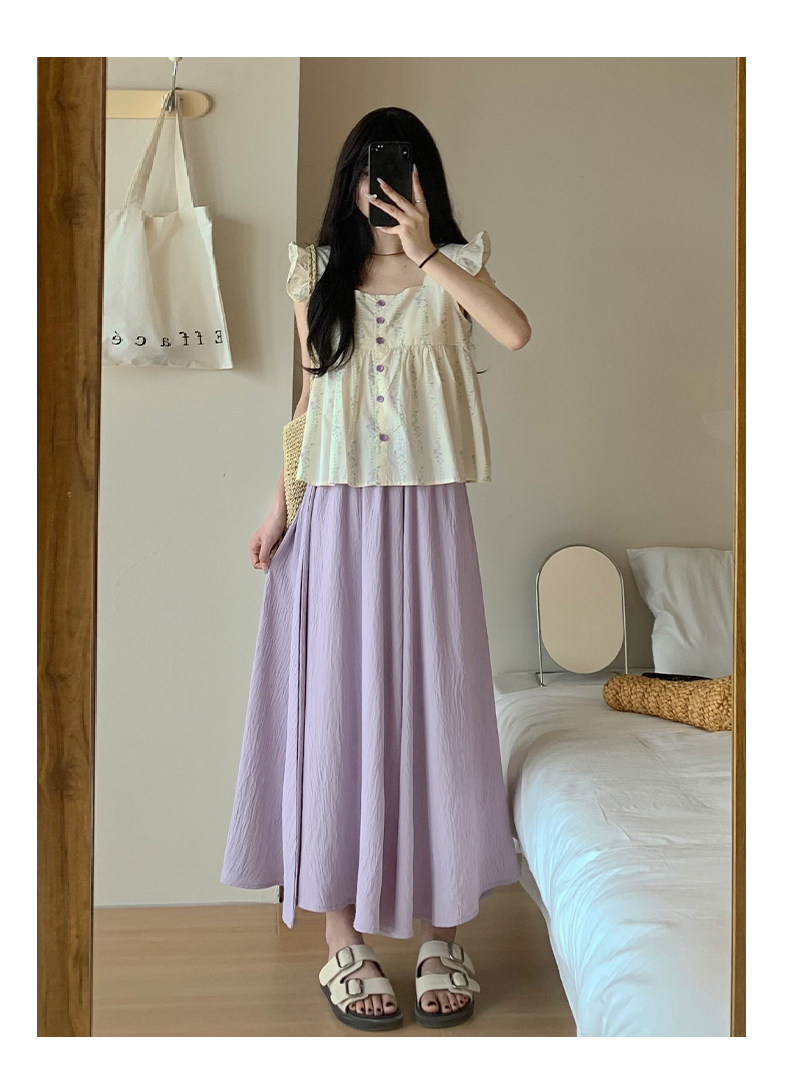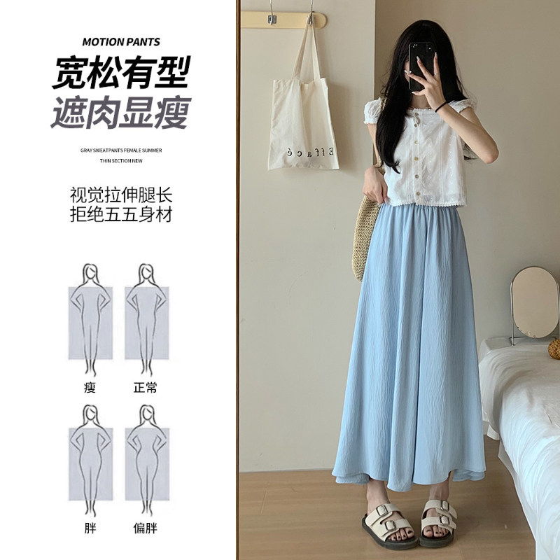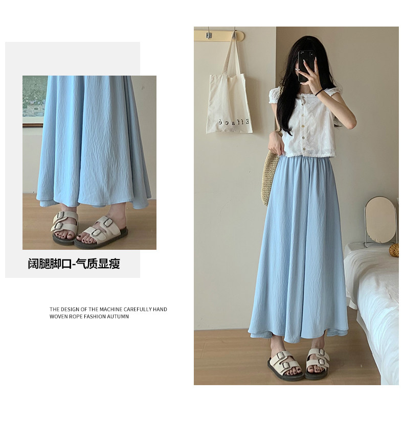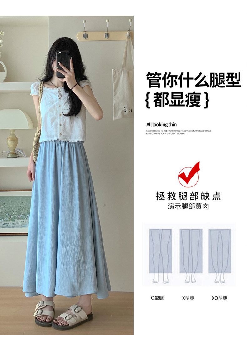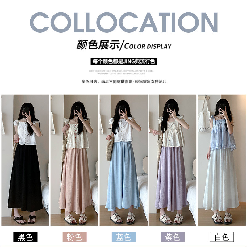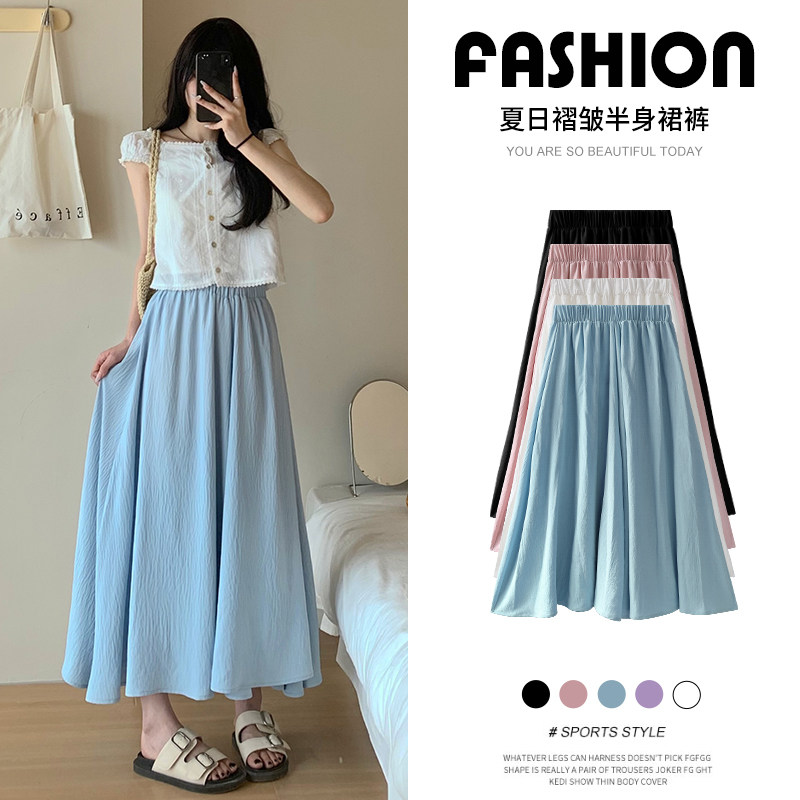 Синяя юбка, тонкие шелковые штаны, А-силуэт, из хлопка и льна, высокая талия