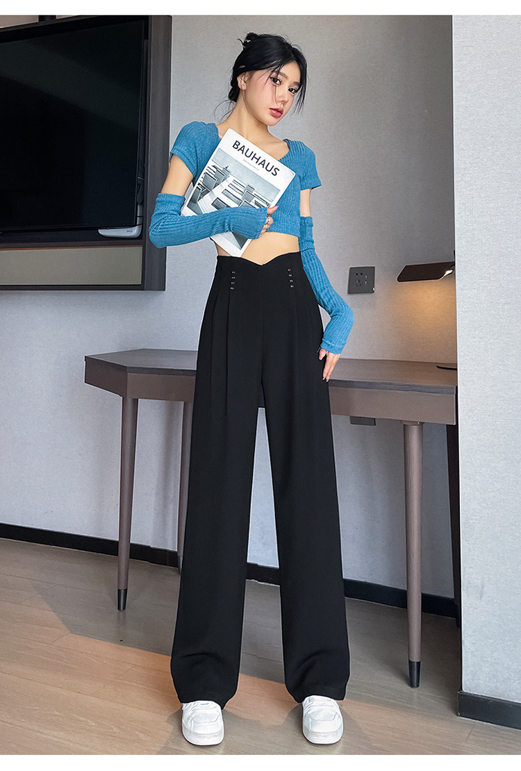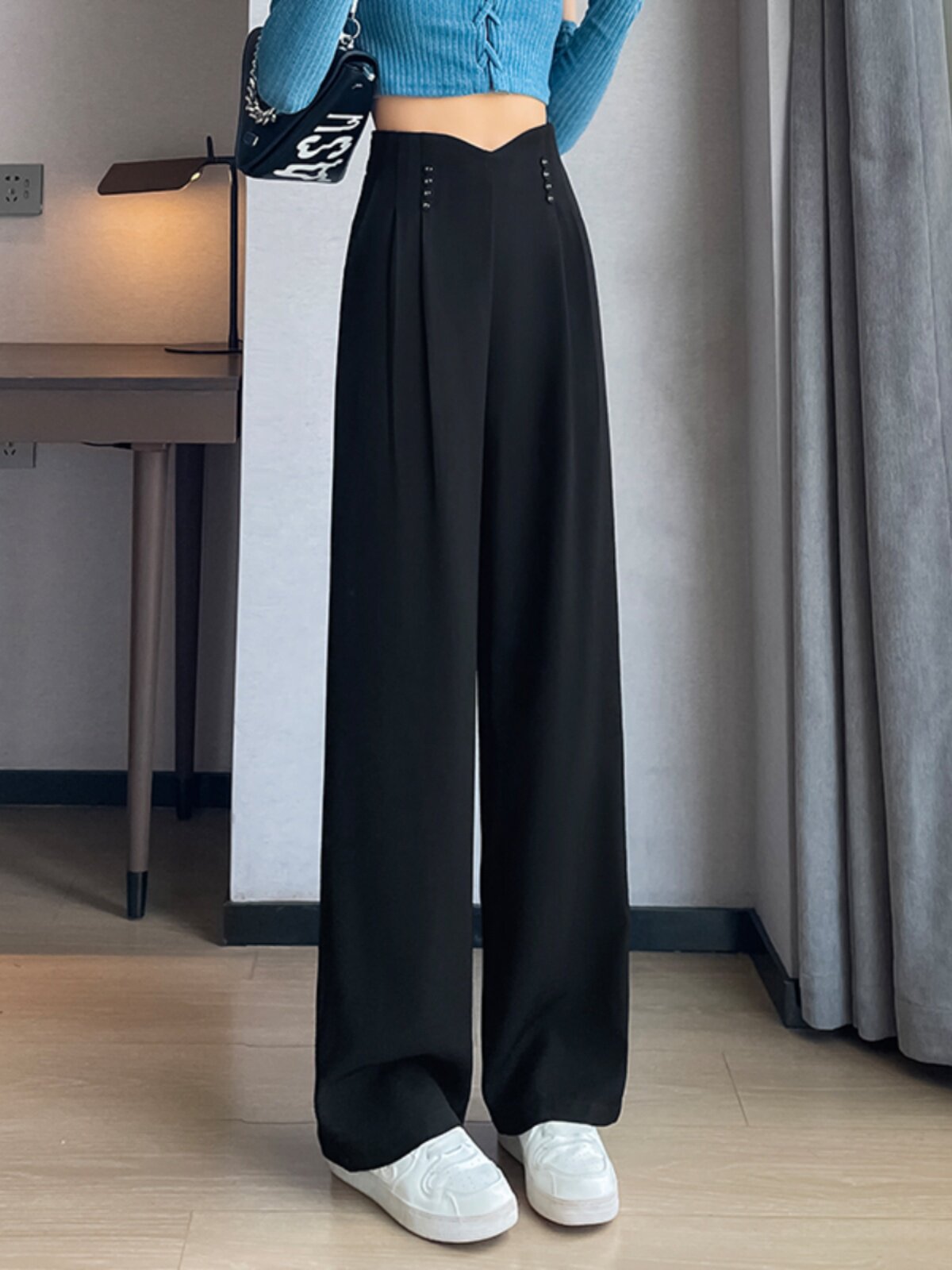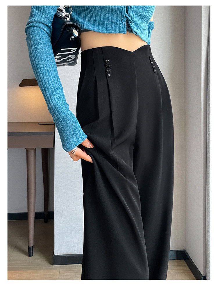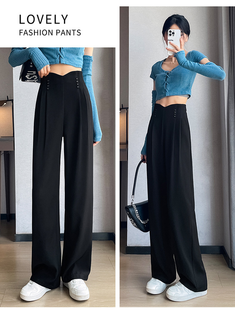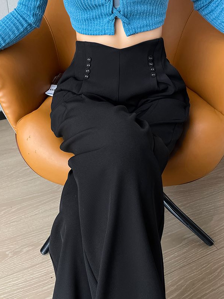 Черные осенние дизайнерские штаны, костюм, тренд сезона, свободный прямой крой, высокая талия