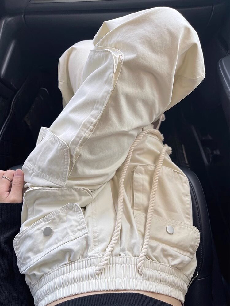 Ретро осенние штаны, повседневные брюки, в американском стиле, высокая талия, свободный прямой крой, на шнурках