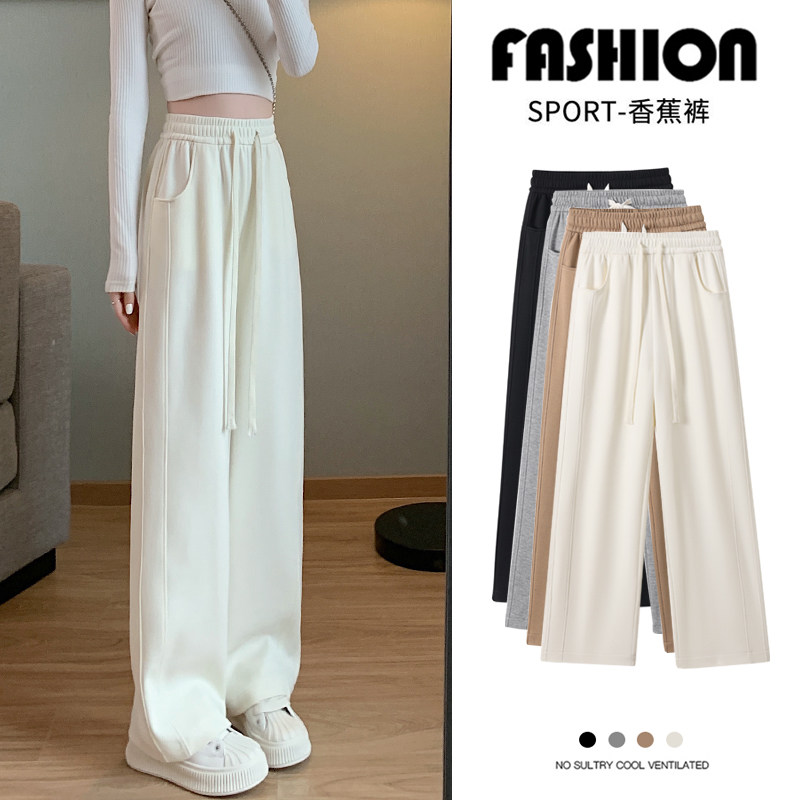 Белые осенние штаны для отдыха, коллекция 2023, высокая талия, свободный прямой крой