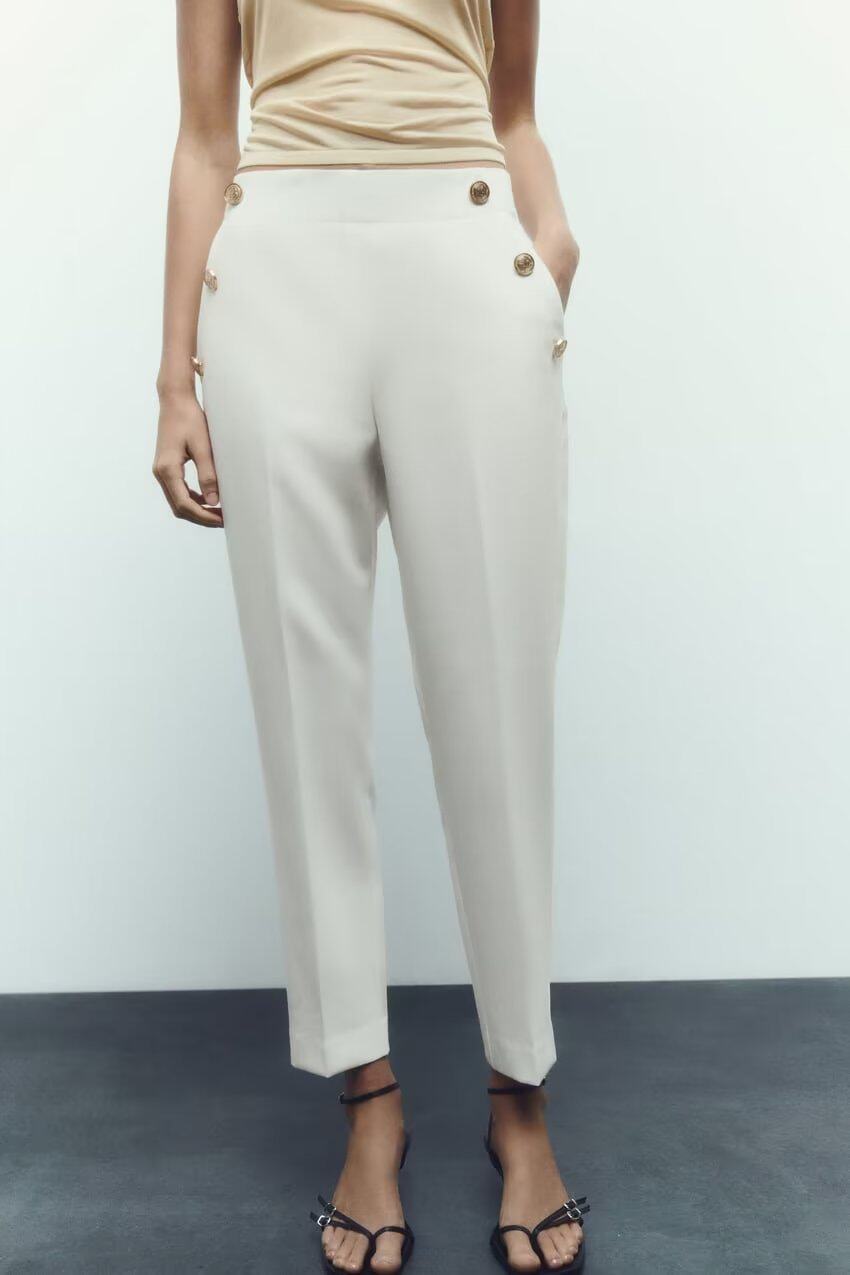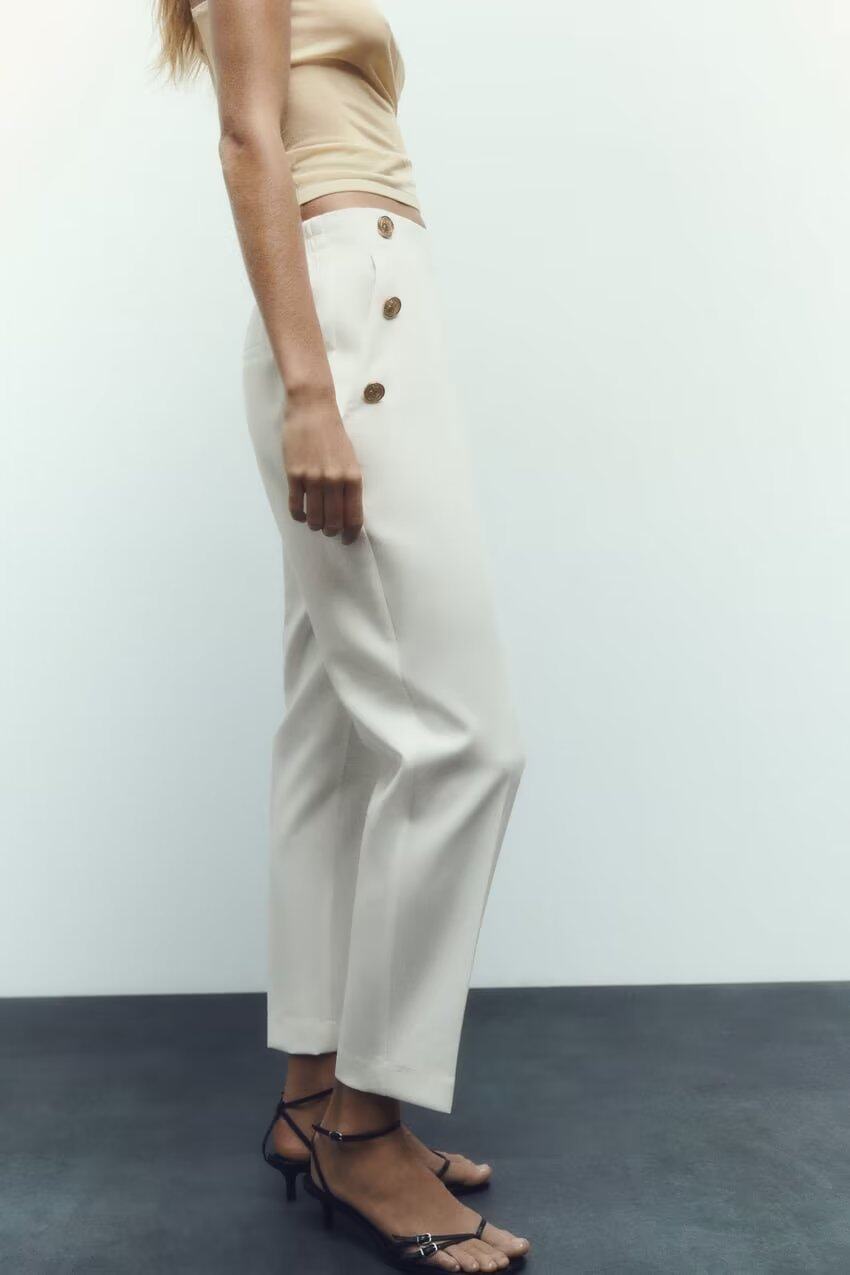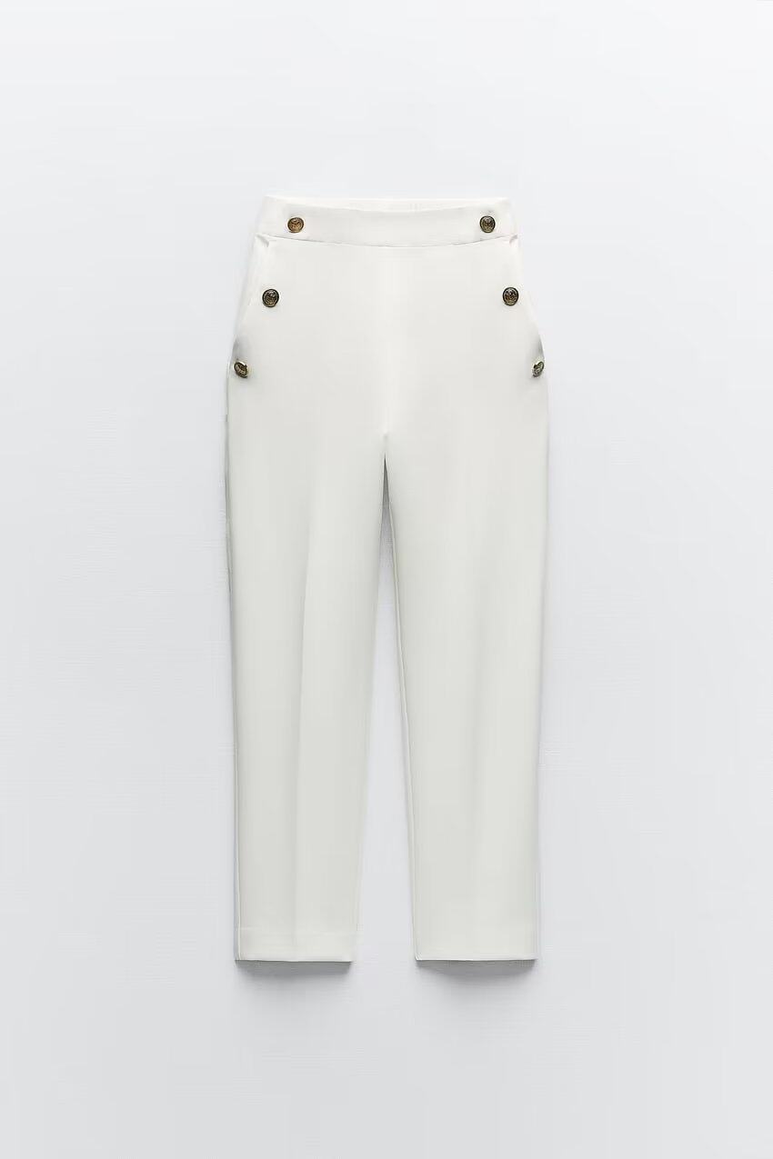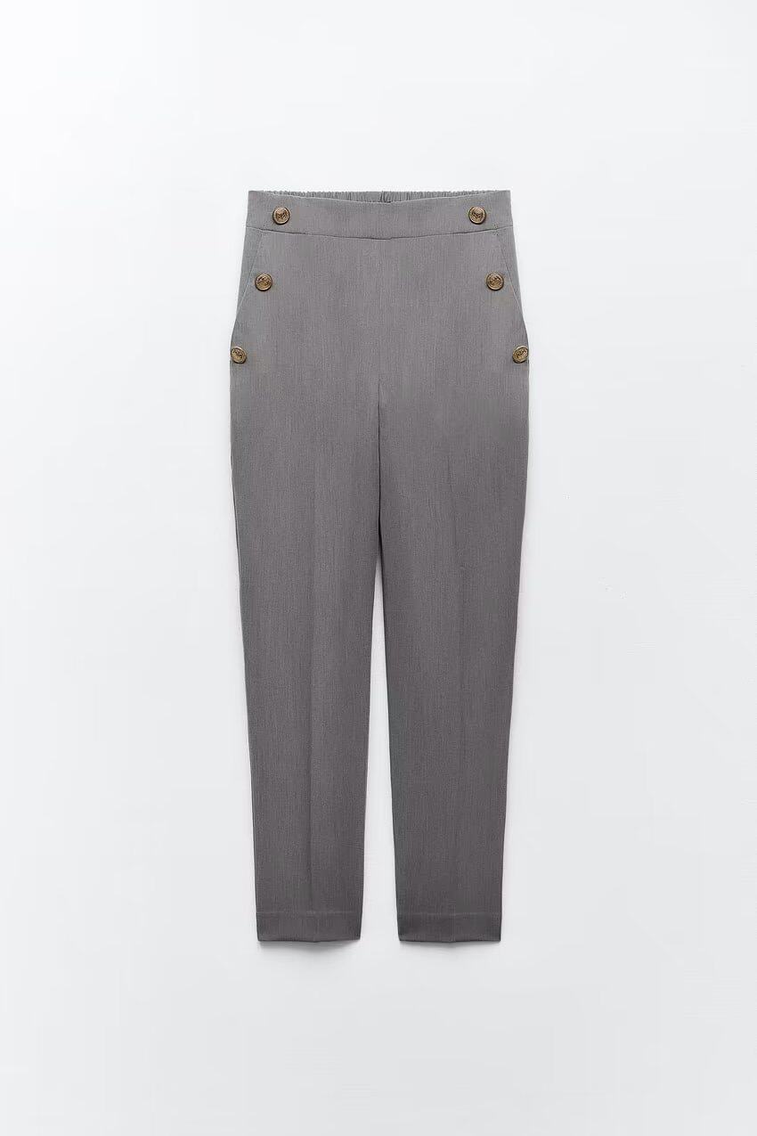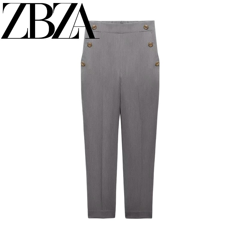 Ювелирные украшения ZA Metal Button High -Waist повседневные прямые брюки 3433701 8372320 9929220 9929120