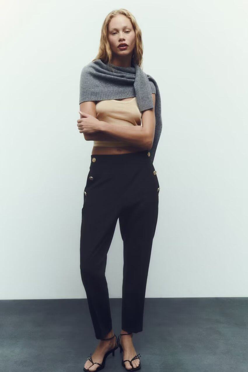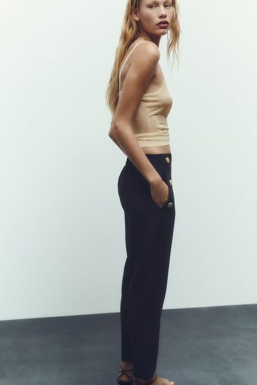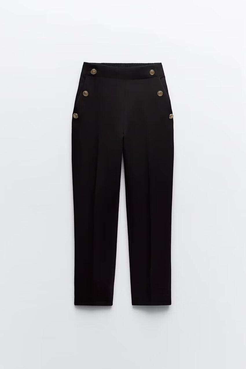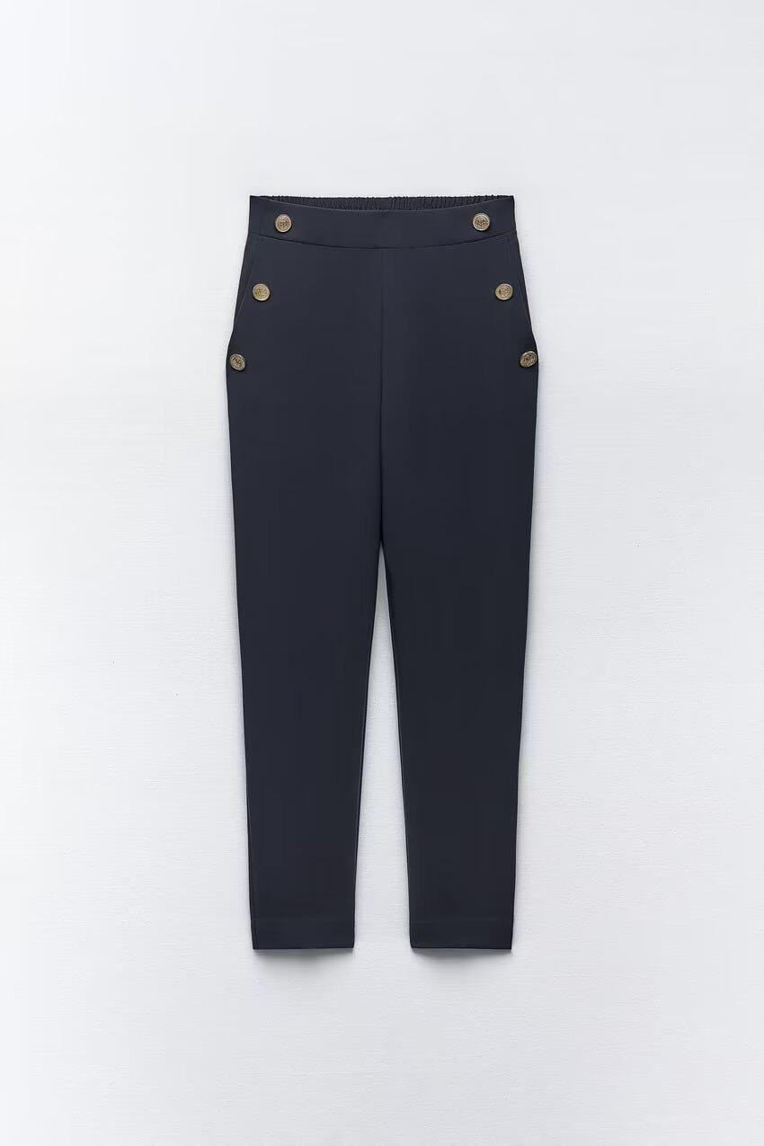 Ювелирные украшения ZA Metal Button High -Waist повседневные прямые брюки 3433701 8372320 9929220 9929120