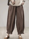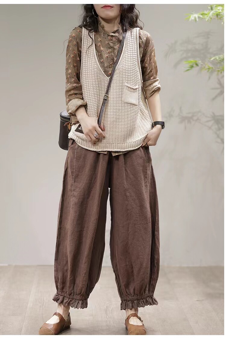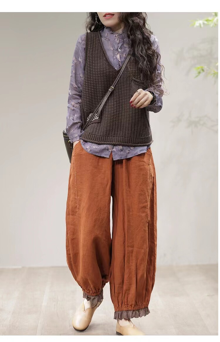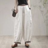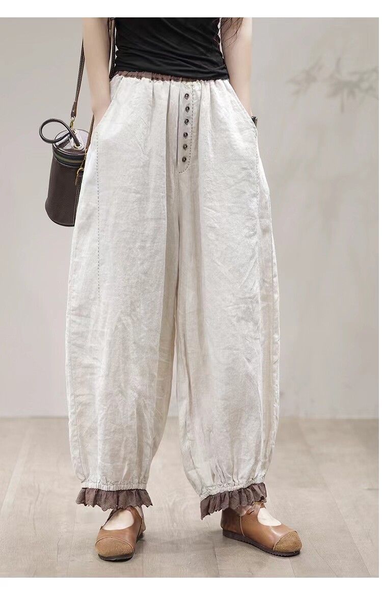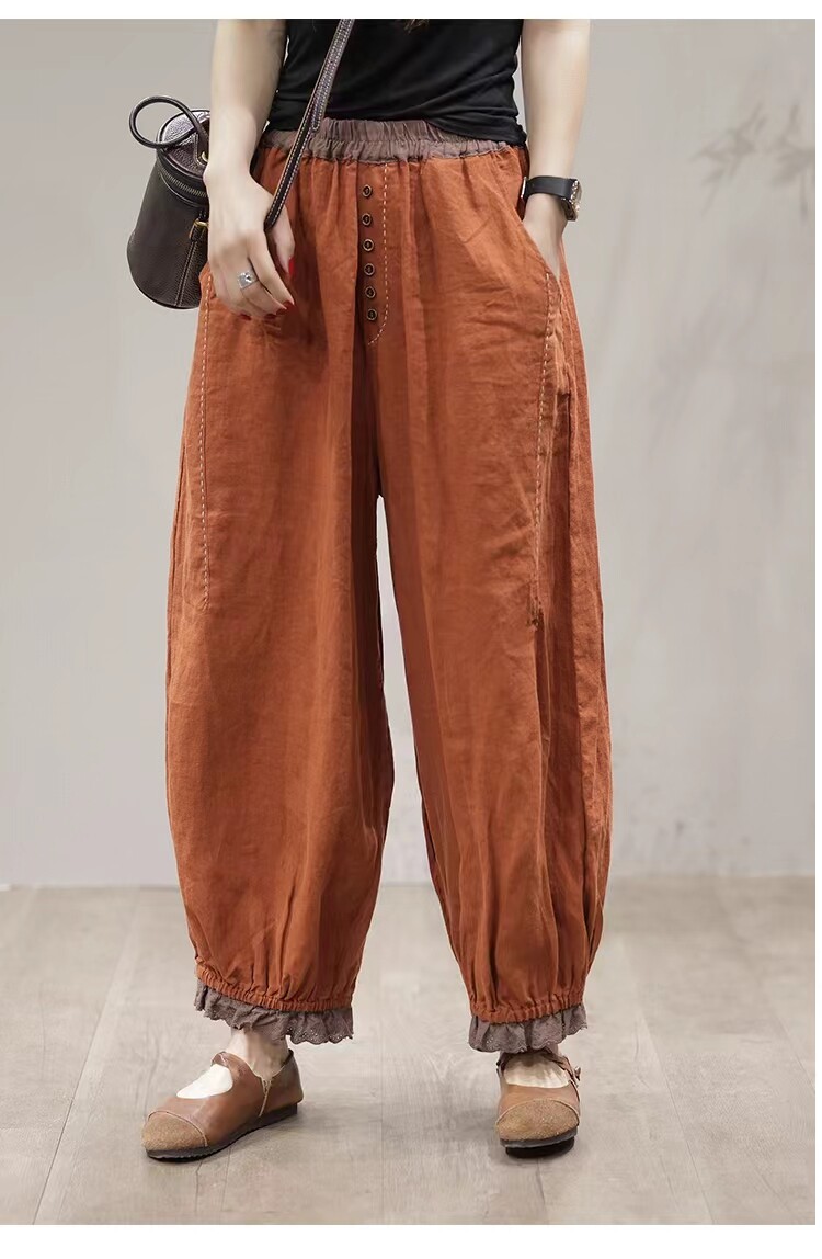 Осенние ретро штаны, кружевной фонарь, большой размер, из хлопка и льна