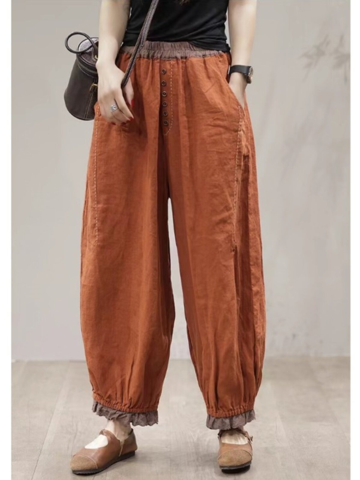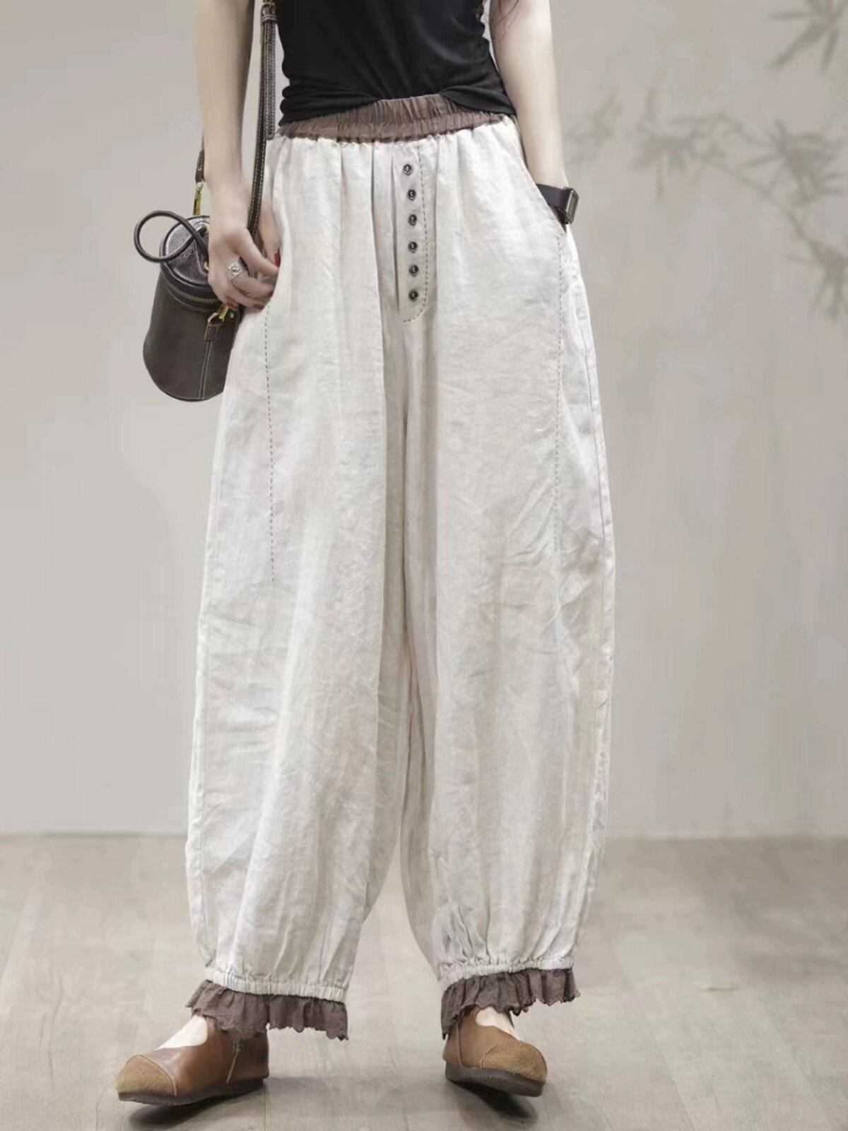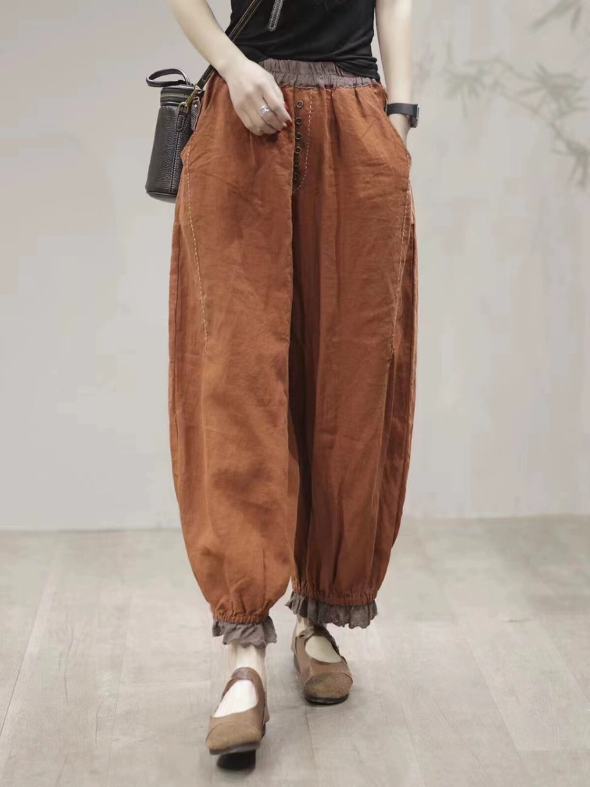Осенние ретро штаны, кружевной фонарь, большой размер, из хлопка и льна