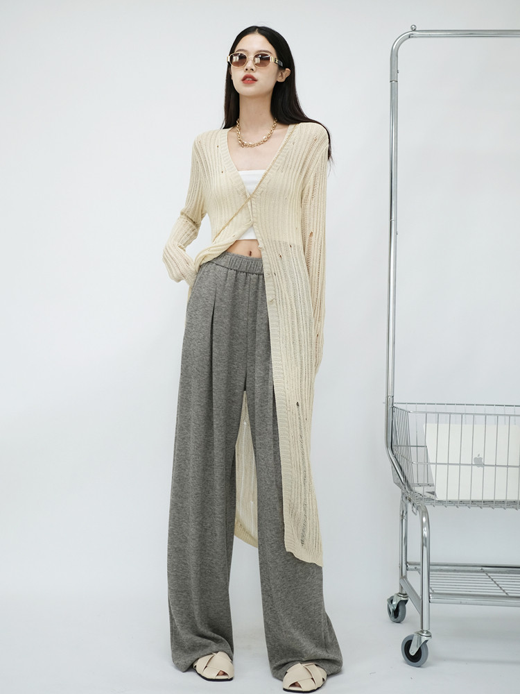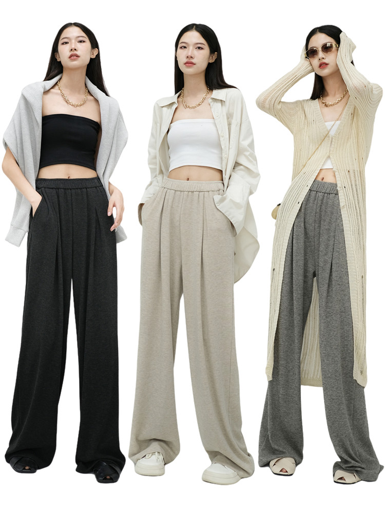 Длинные трикотажные демисезонные штаны, сверхдлинные леггинсы, свободный прямой крой
