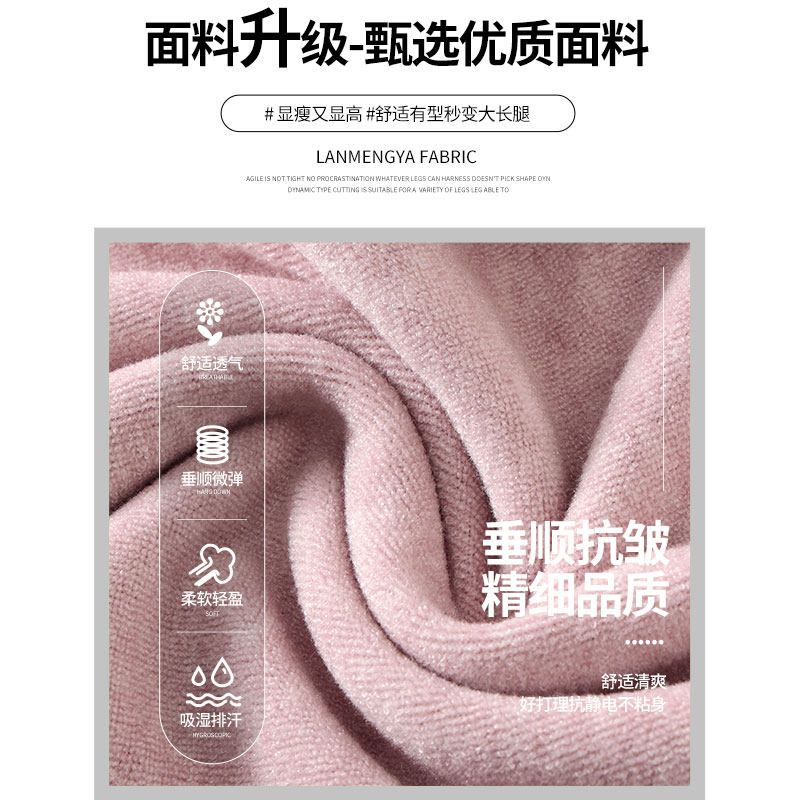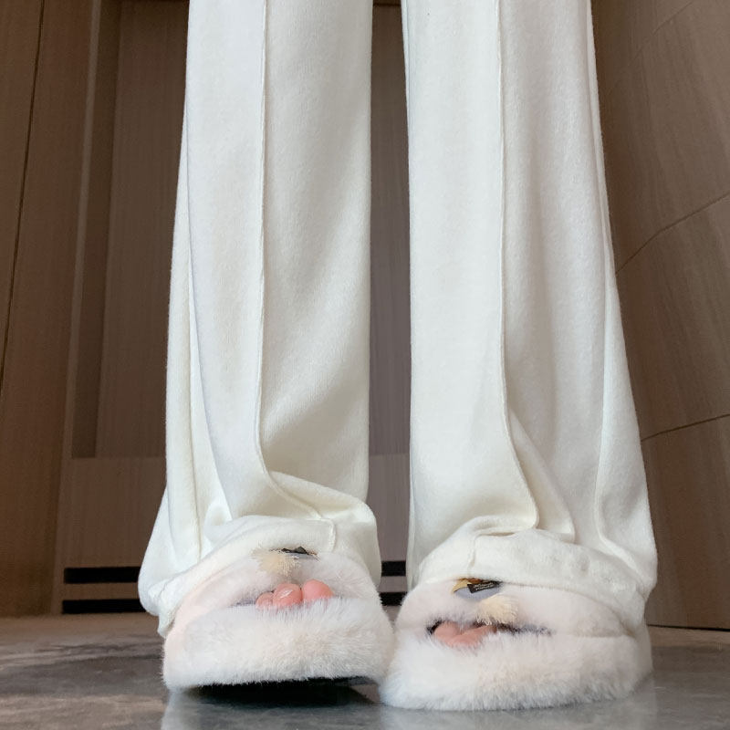 Белые осенние штаны, трикотажное полотенце для отдыха, клейкий рис, высокая талия, свободный прямой крой