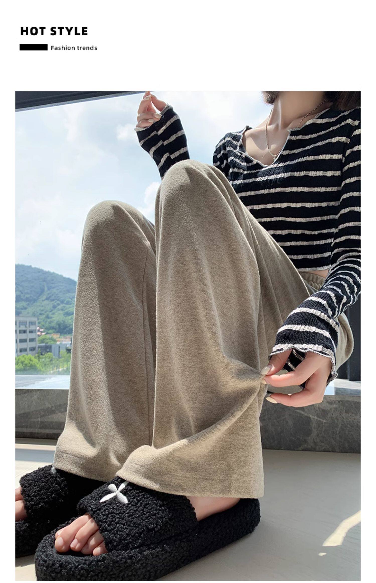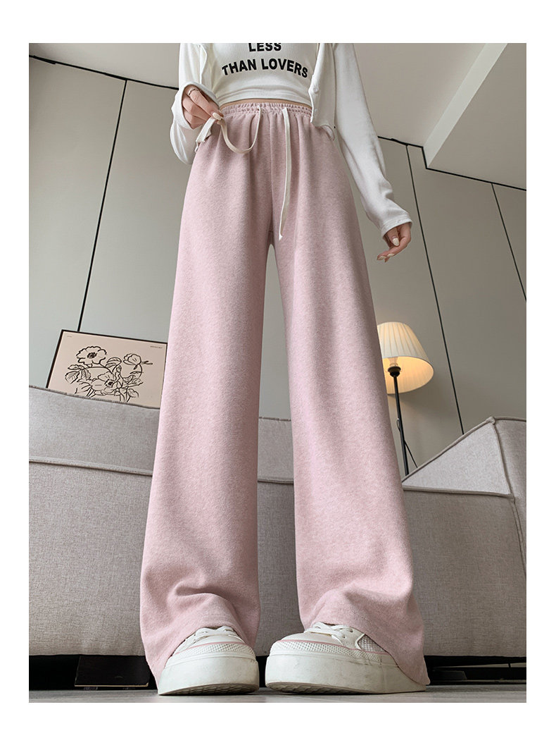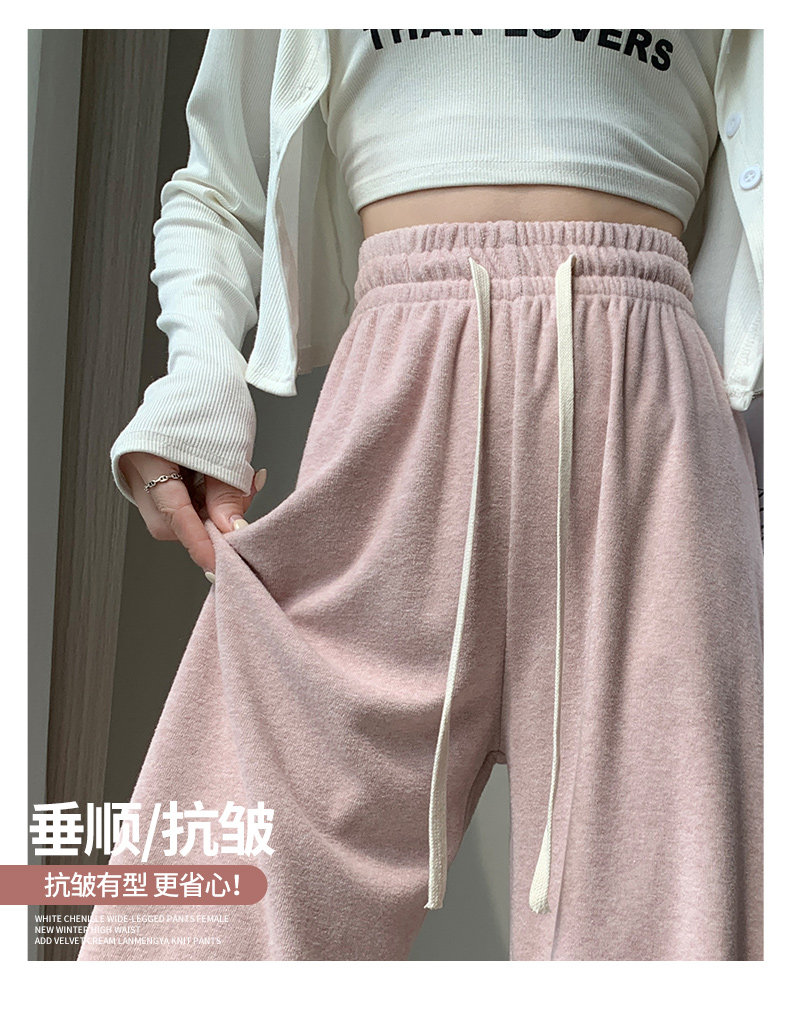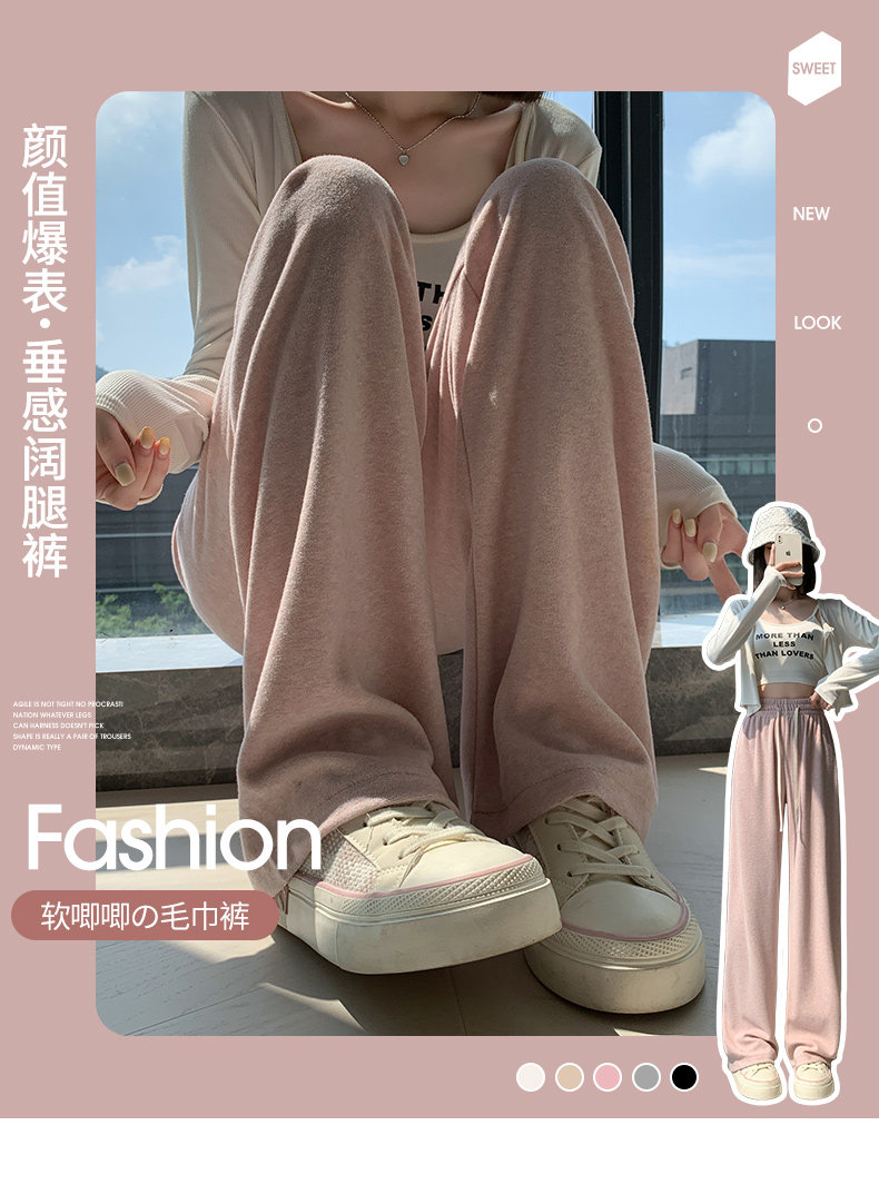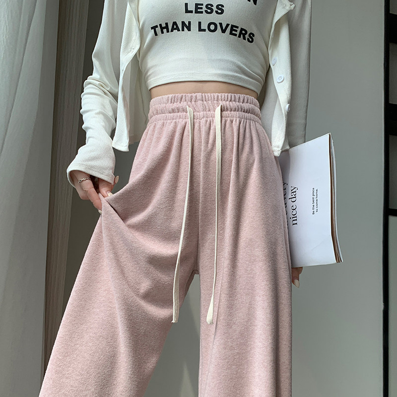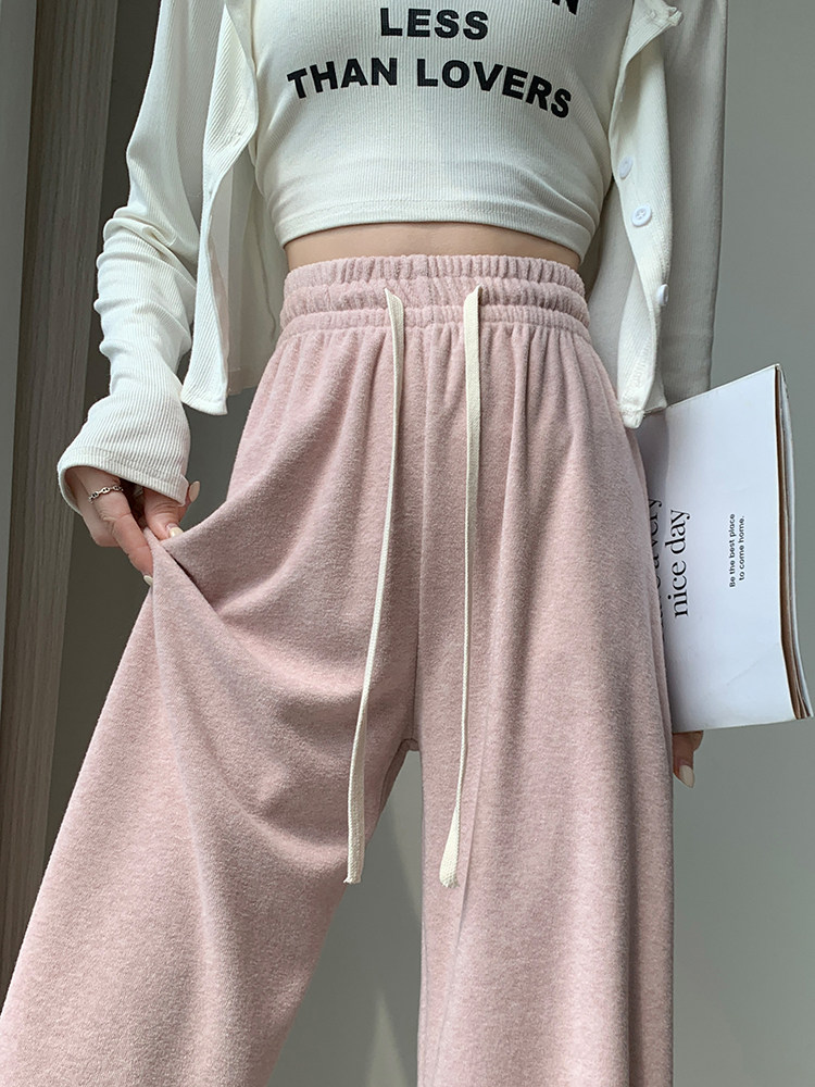 Розовое полотенце, осенние демисезонные кремовые трикотажные кашемировые штаны для отдыха, высокая талия, оверсайз