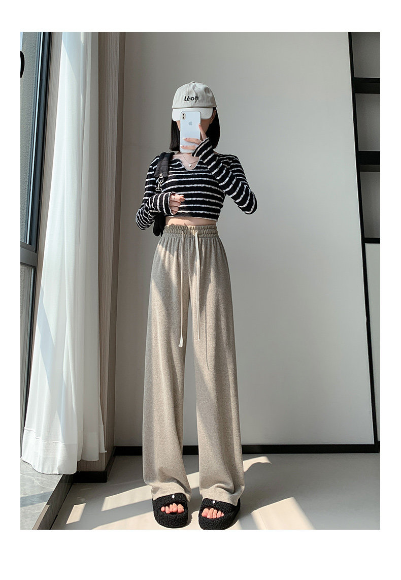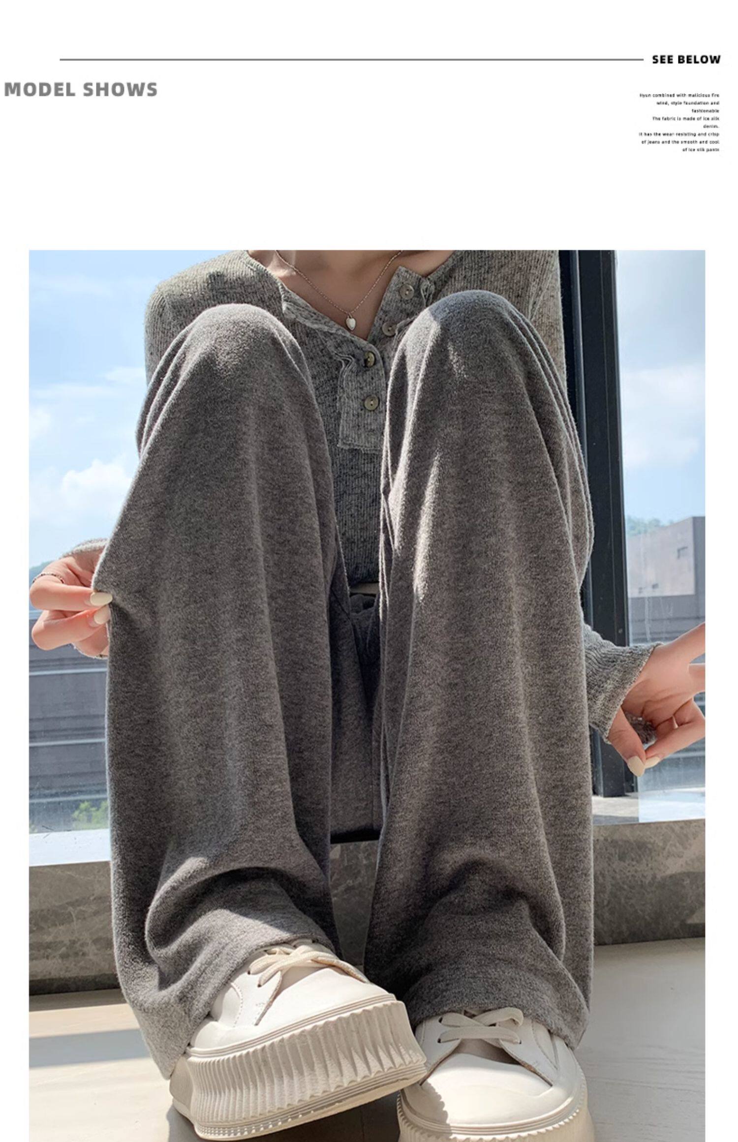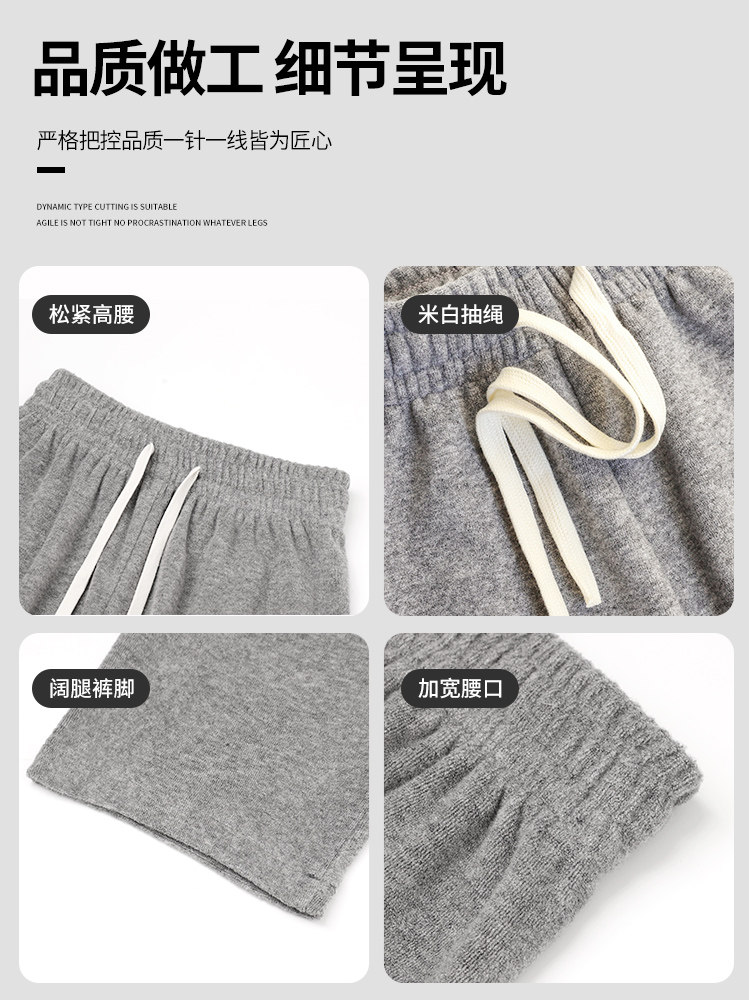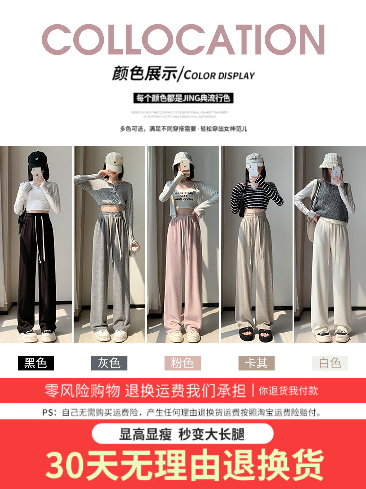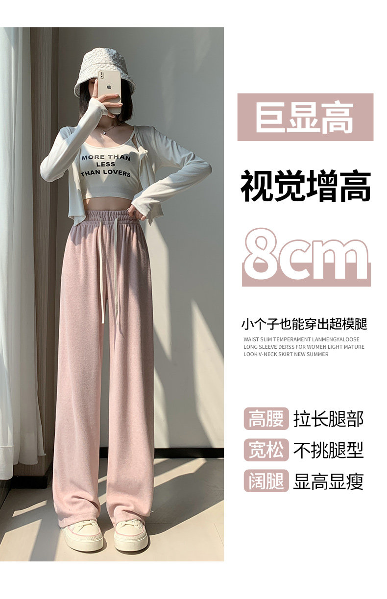Розовое полотенце, осенние демисезонные кремовые трикотажные кашемировые штаны для отдыха, высокая талия, оверсайз