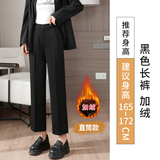 Костюм, приталенные черные утепленные штаны, свободный прямой крой, высокая талия, по фигуре, подходит для подростков