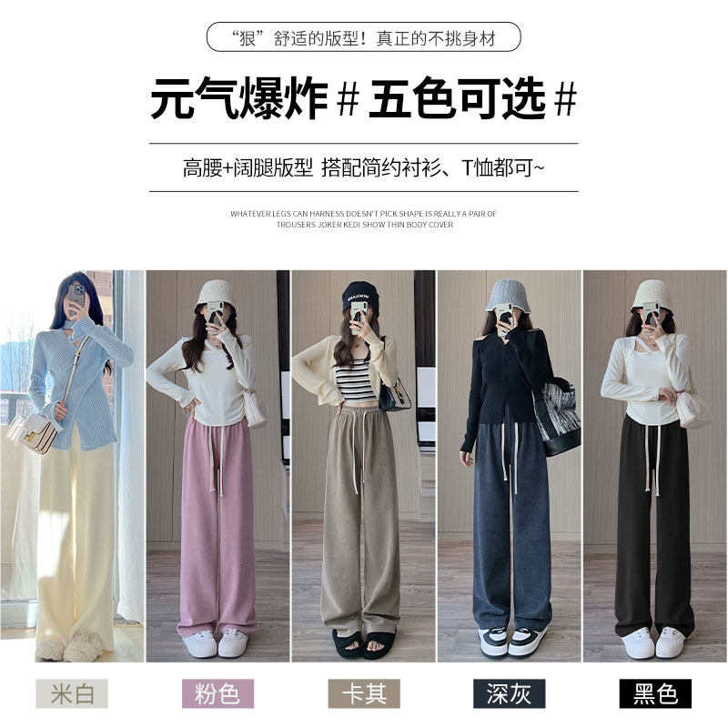 Белые вельветовые демисезонные штаны, леггинсы, флисовый трикотажный клейкий рис для отдыха, высокая талия, оверсайз, подходит для подростков