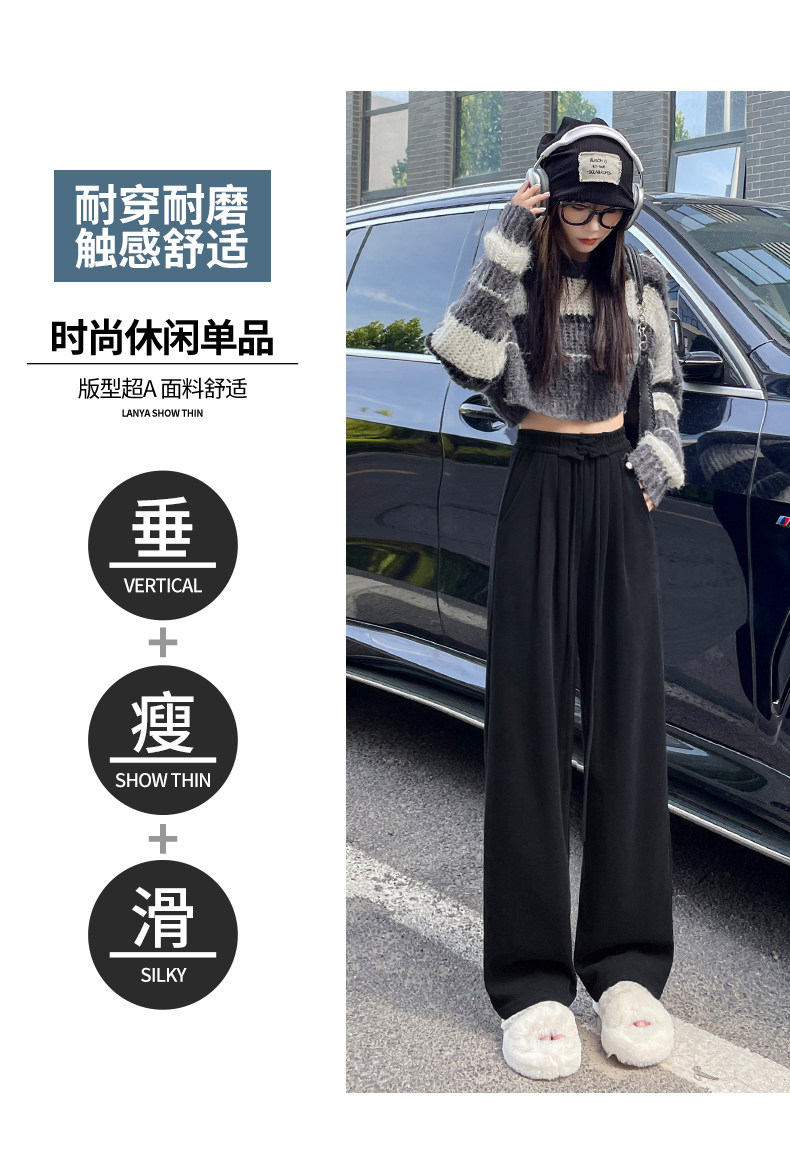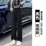 Черные демисезонные штаны, леггинсы для отдыха, по фигуре, свободный прямой крой, высокая талия