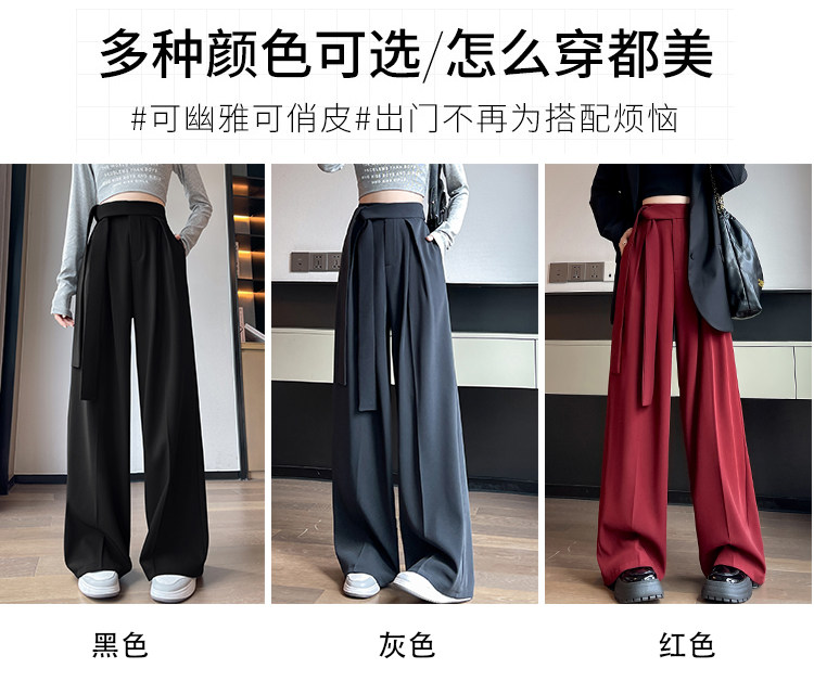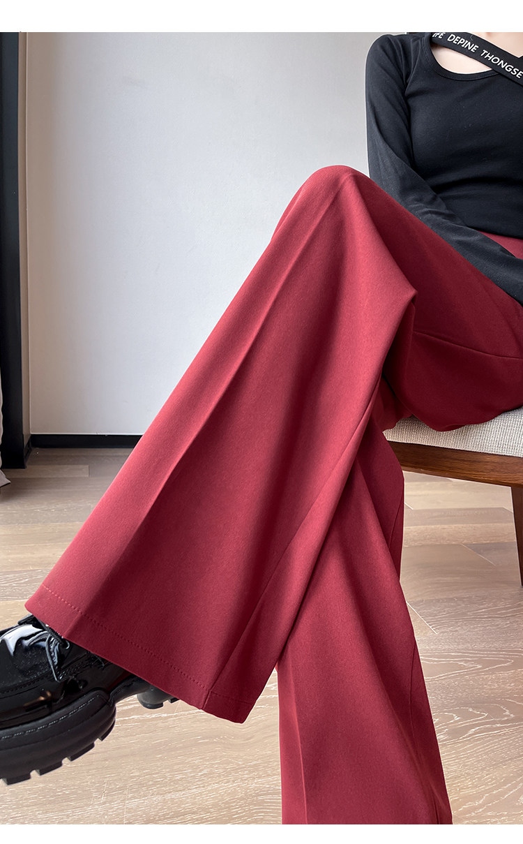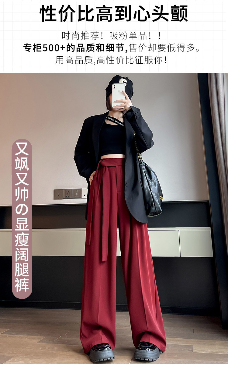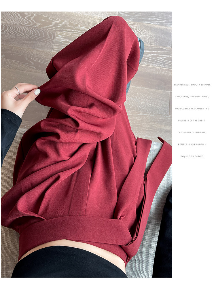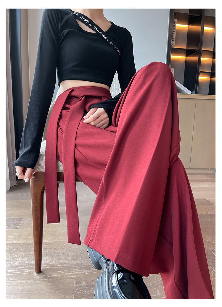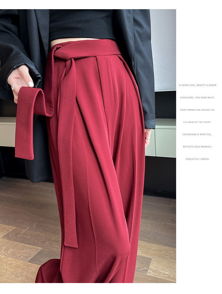 Красный пиджак классического кроя, весенние штаны, дизайнерский длинный ремень, тренд сезона, высокая талия, свободный прямой крой