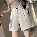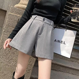 Шерстяные приталенные демисезонные дизайнерские штаны для отдыха, шорты, свободный крой, высокая талия, тренд сезона, подходят для подростков