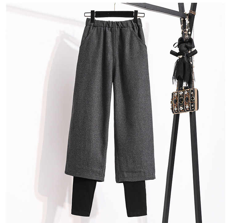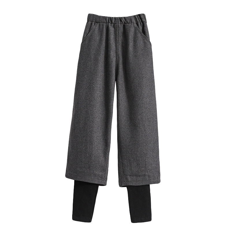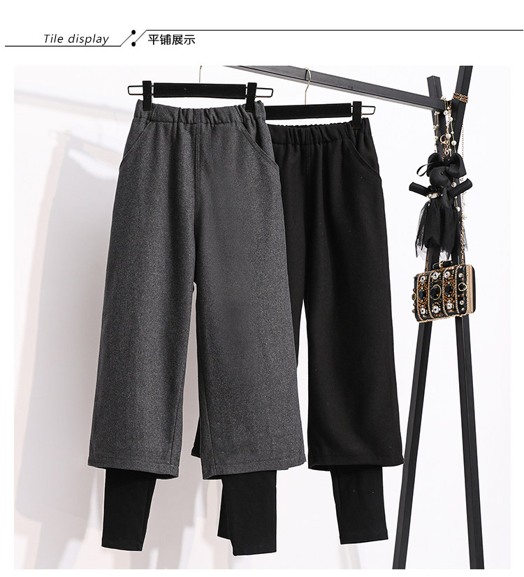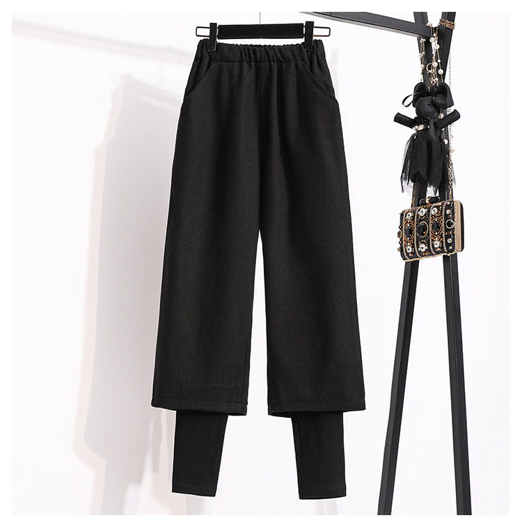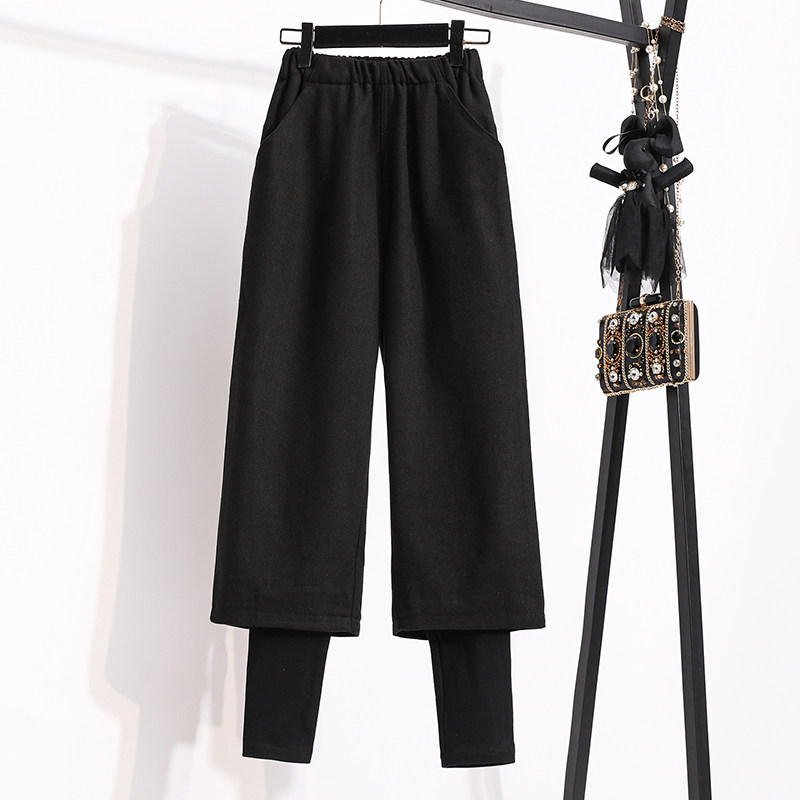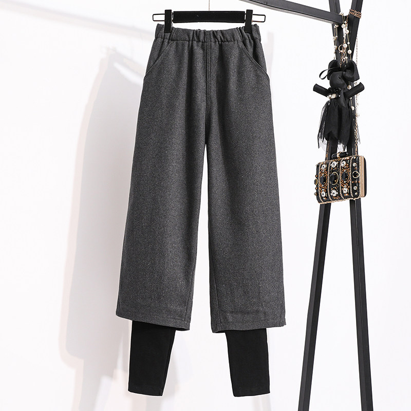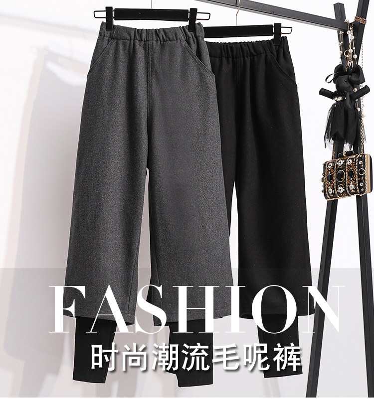 Демисезонный комплект, модные шерстяные штаны, большой размер, подходит для полных девушек, 2024 года, высокая талия