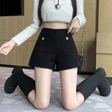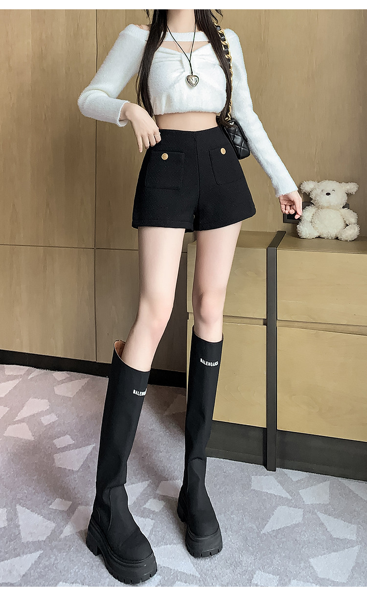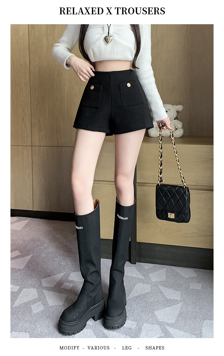Черные демисезонные шорты, приталенные леггинсы, дизайнерские штаны, сапоги, А-силуэт, свободный прямой крой, тренд сезона