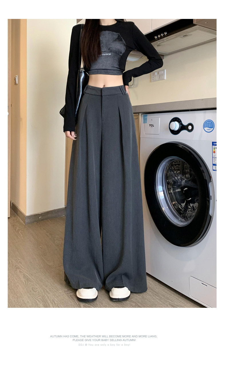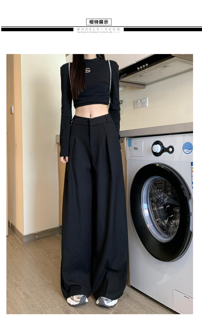 Черный костюм, осенние штаны, свободный крой, высокая талия