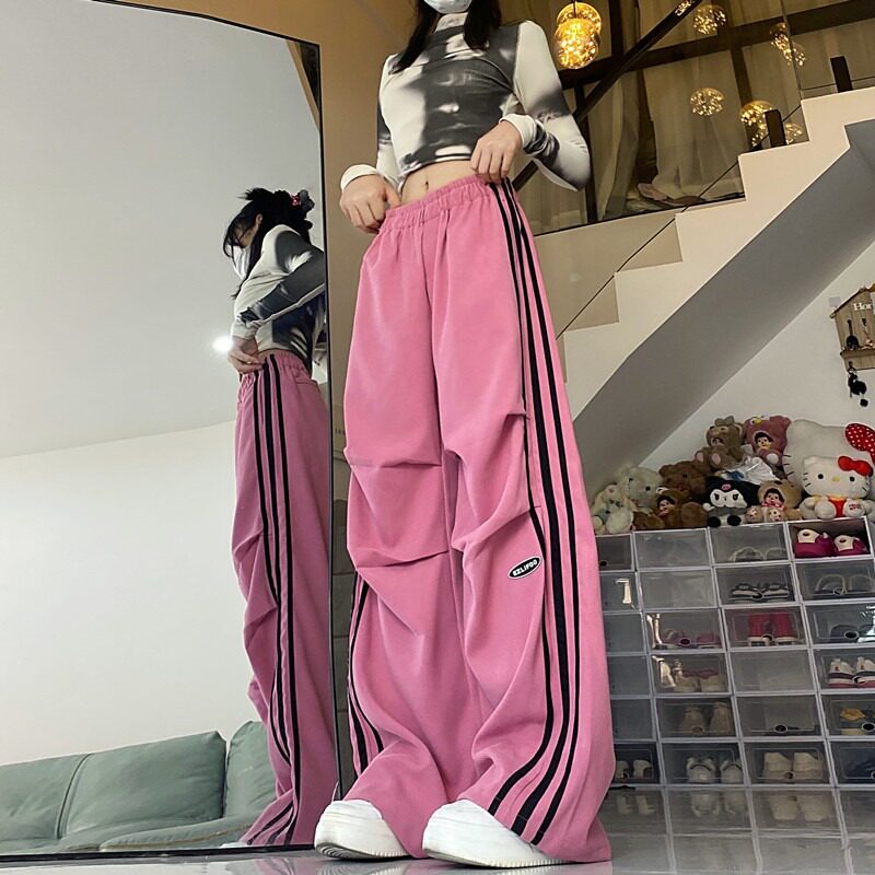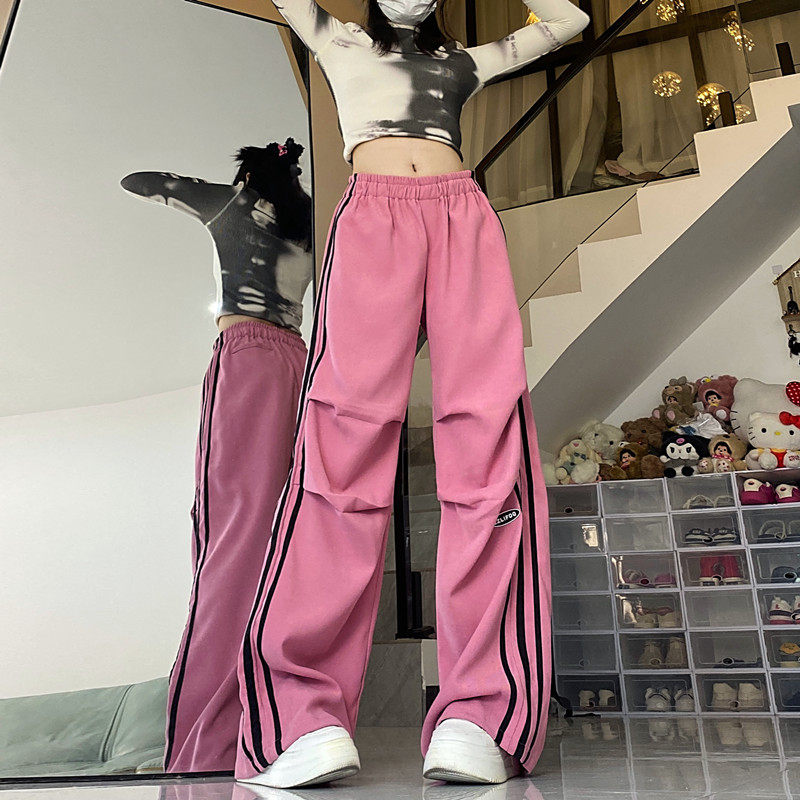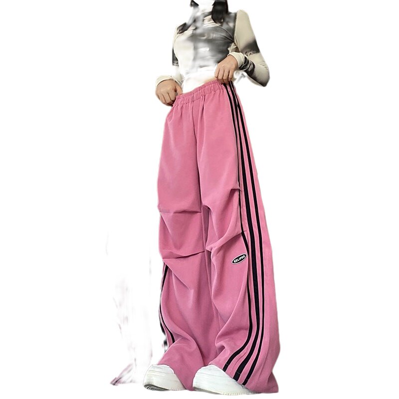 Ретро демисезонные штаны для отдыха, розовые леггинсы, в американском стиле, свободный крой