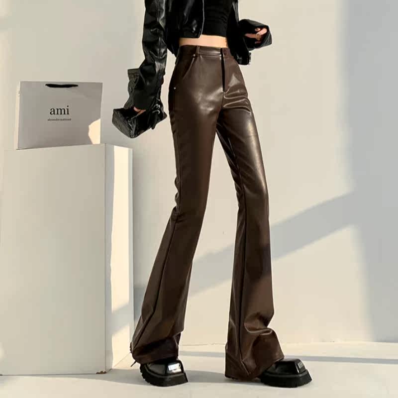 Черный мегафон, демисезонные приталенные полиуретановые леггинсы, штаны, в американском стиле, свободный прямой крой