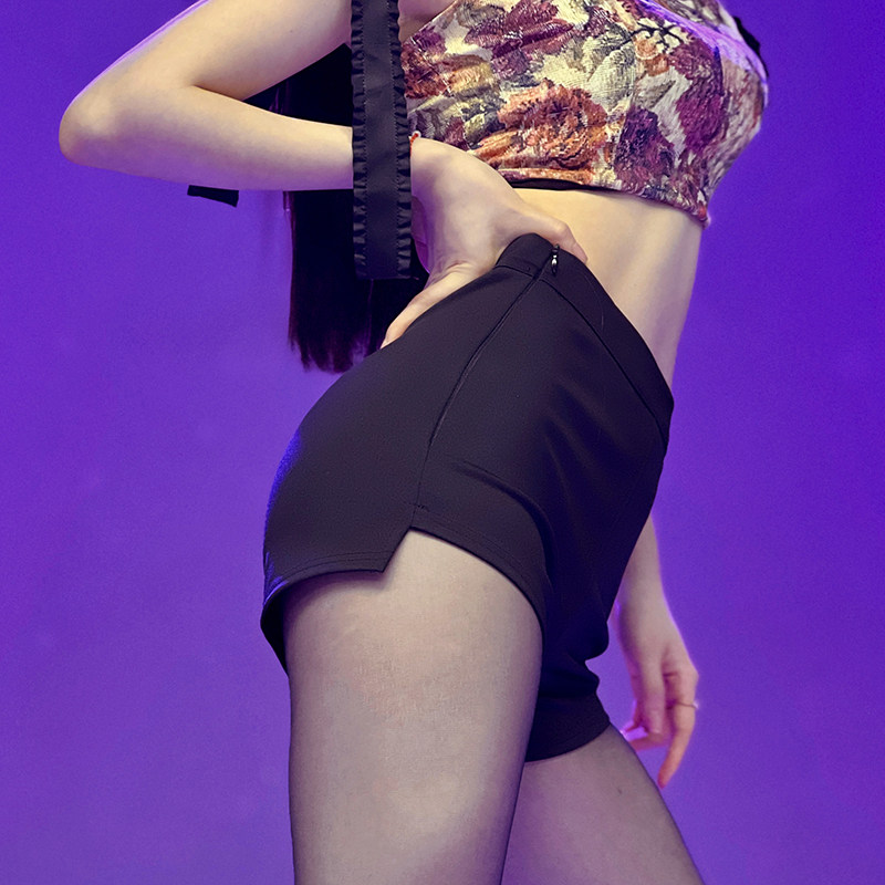 Шорты, черные штаны, приталенное защитное белье для отдыха, ассиметричный крой, высокая талия