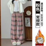 Розовые шерстяные демисезонные утепленные штаны для отдыха, коллекция 2023, высокая талия, по фигуре, свободный прямой крой