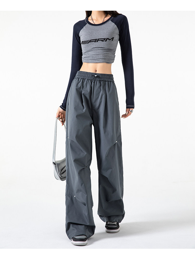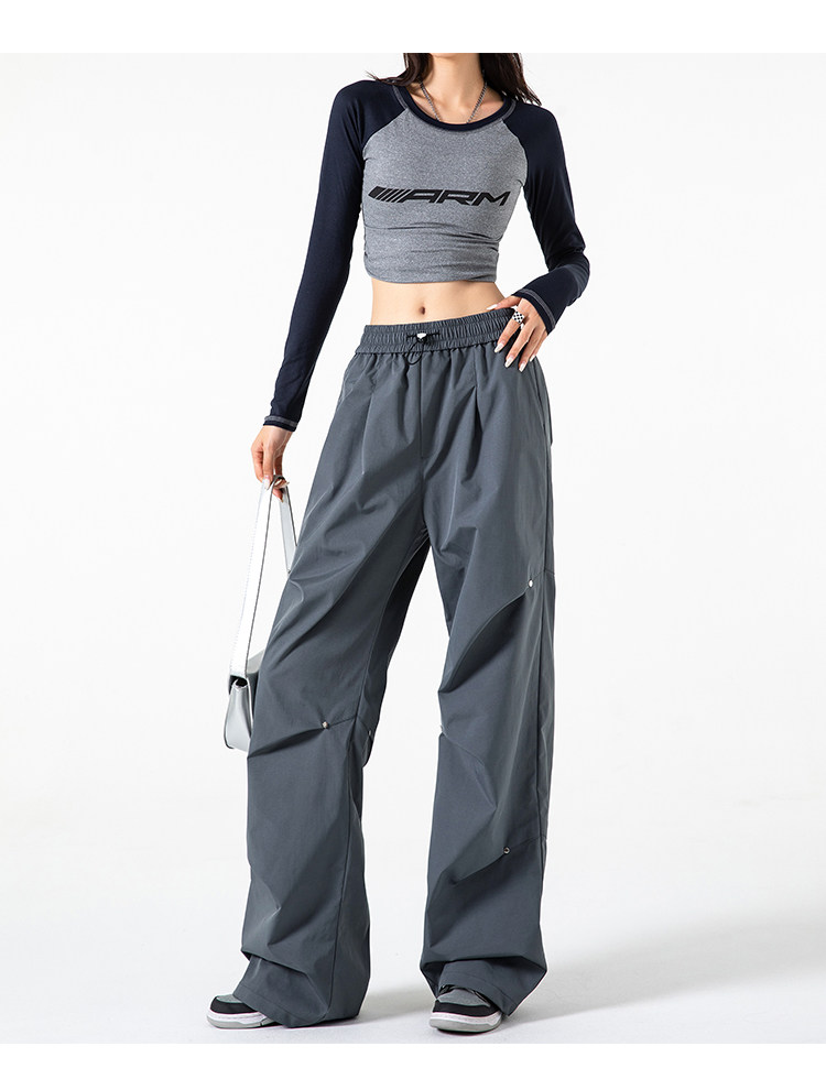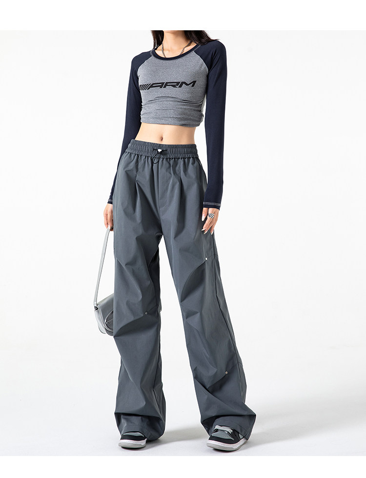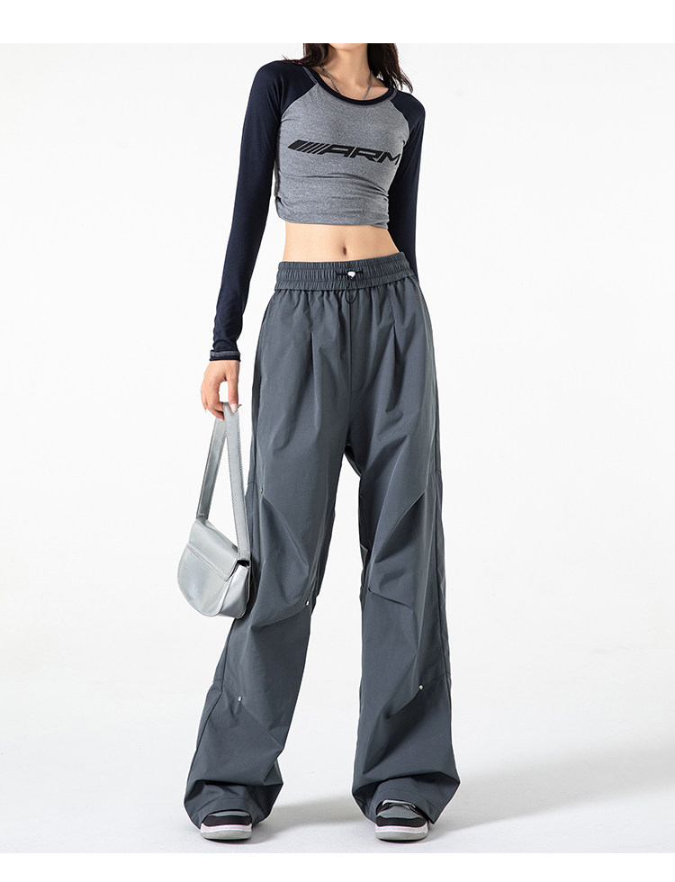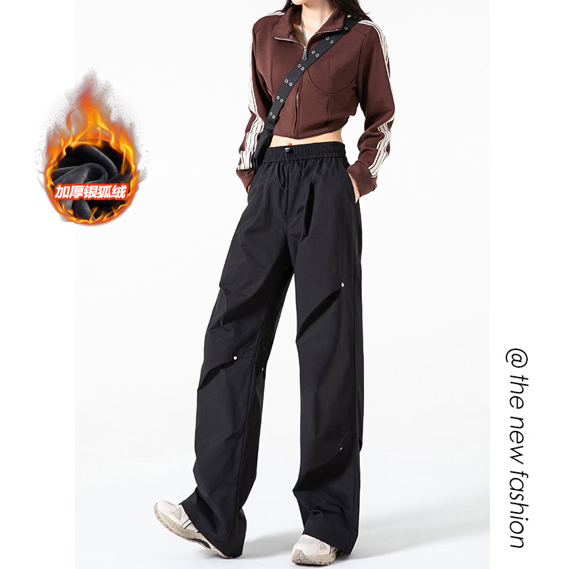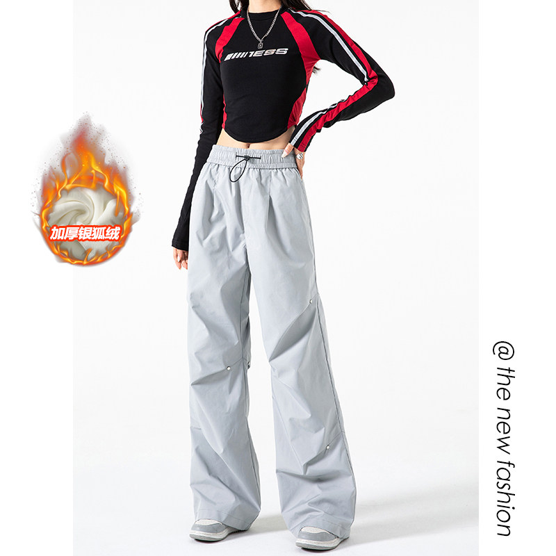 Осенние штаны, в американском стиле, высокая талия, свободный прямой крой
