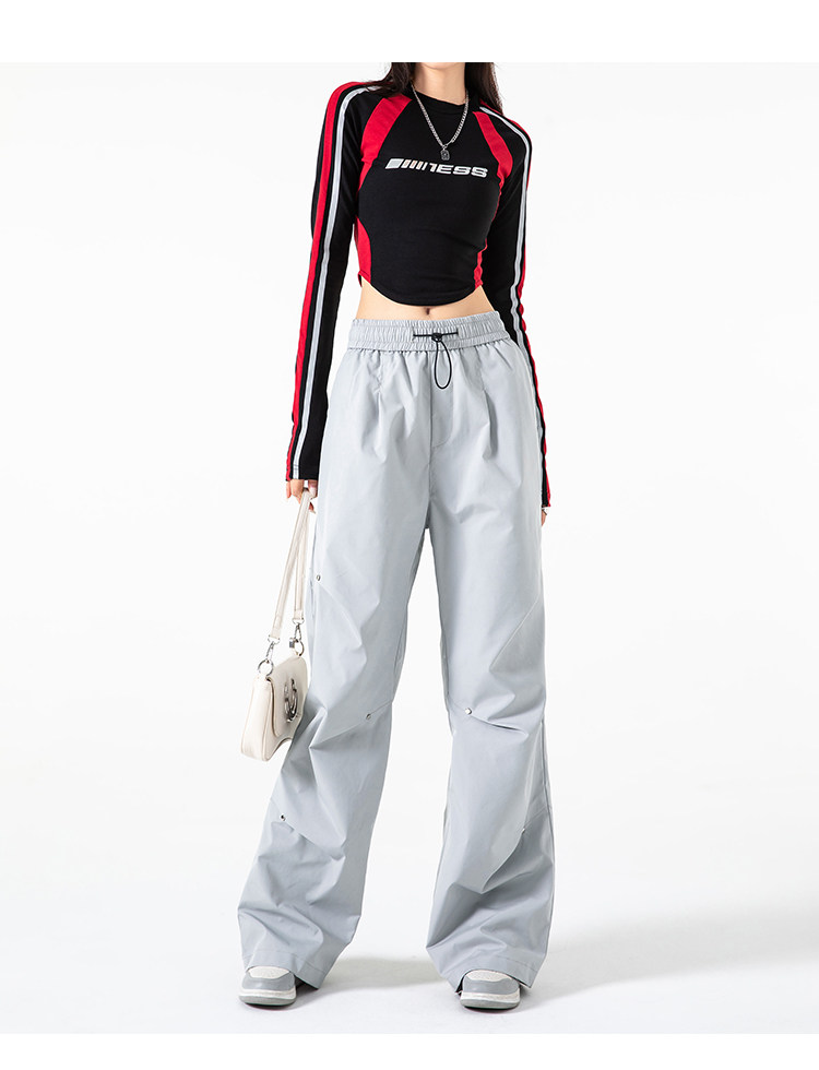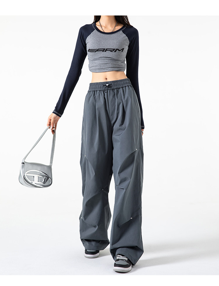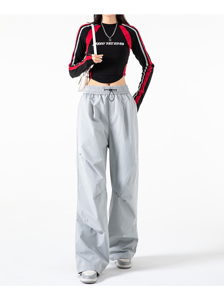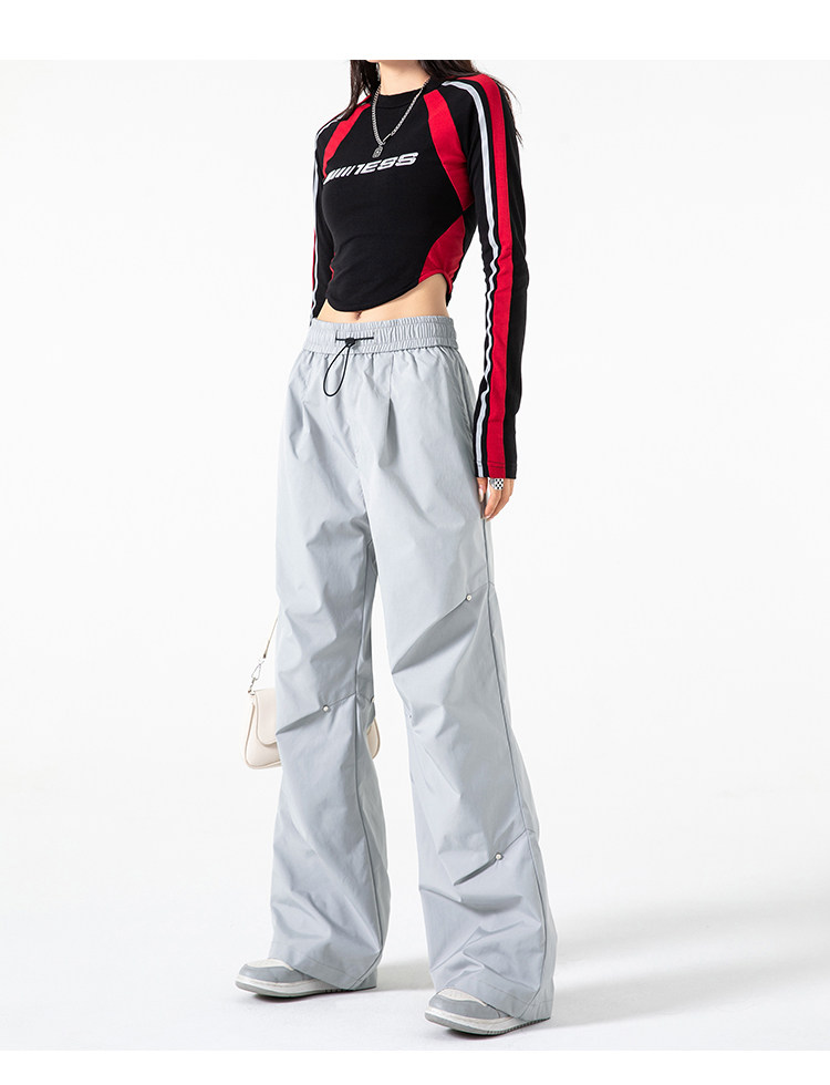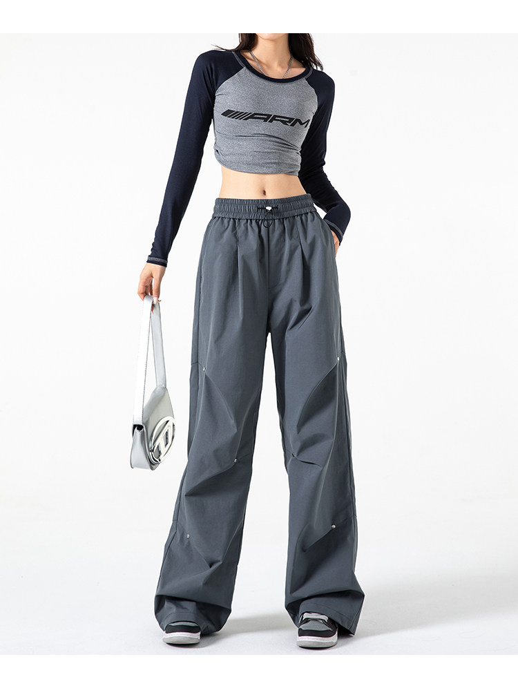 Осенние штаны, в американском стиле, высокая талия, свободный прямой крой